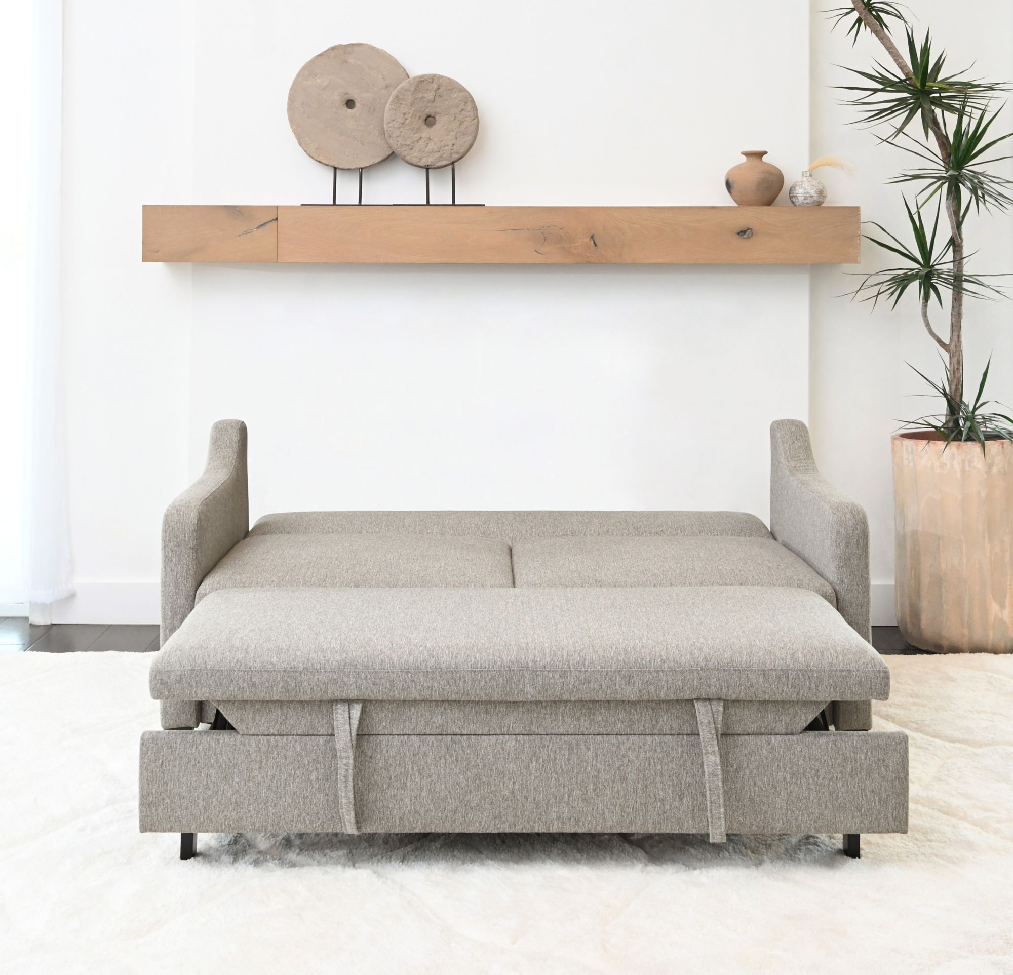 No guest room? No problem. The Muffy Stain-Resistant Fabric Sleeper Sofa will transform your living room or office into a peaceful space for your guests to rest. The stain-resistant fabric is a multi-color flat woven with an impeccable hand for a subtle and soft feel. Including a USB port on the inside of the armrest and a pull-out bed, your overnight guests will feel at home on this beautifully functional sofa.