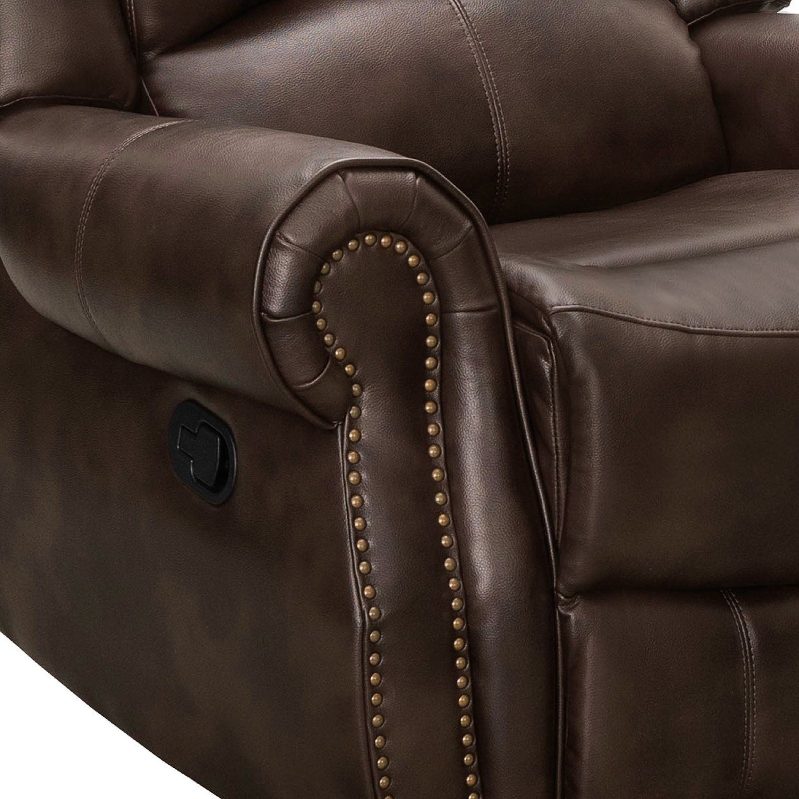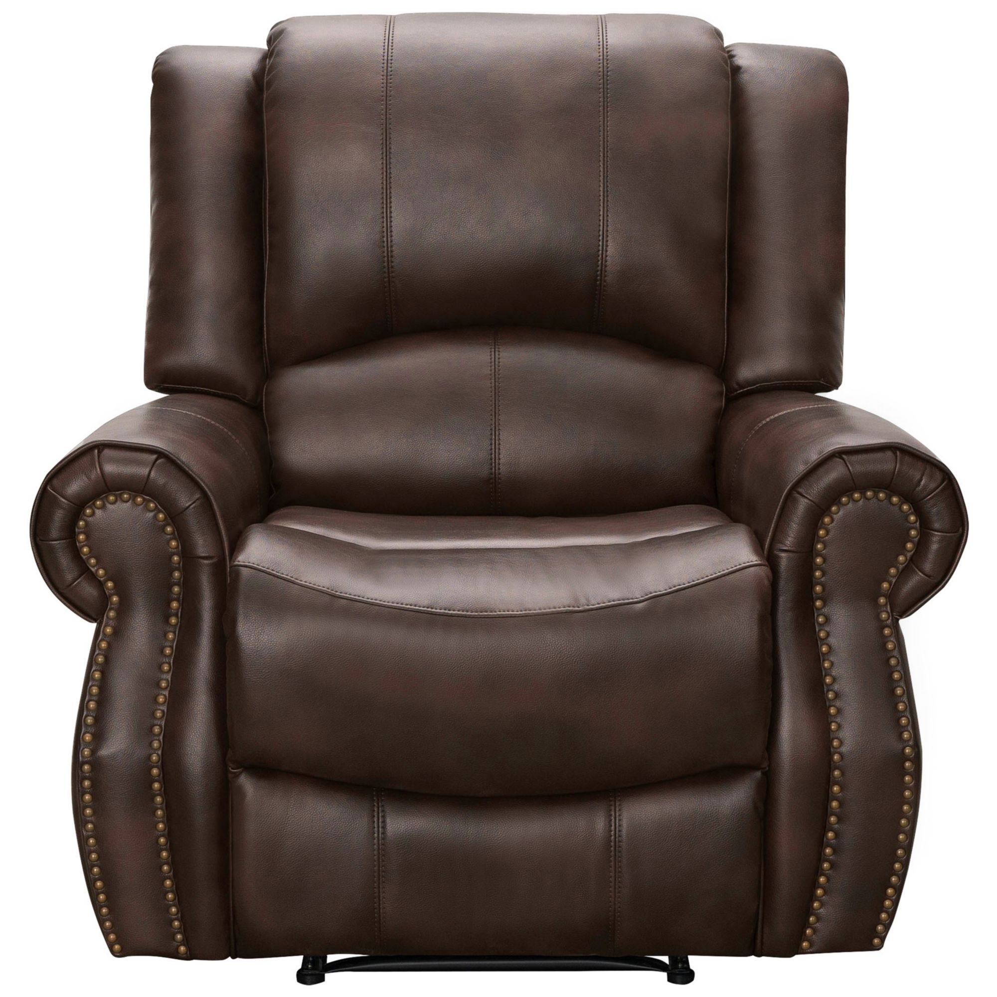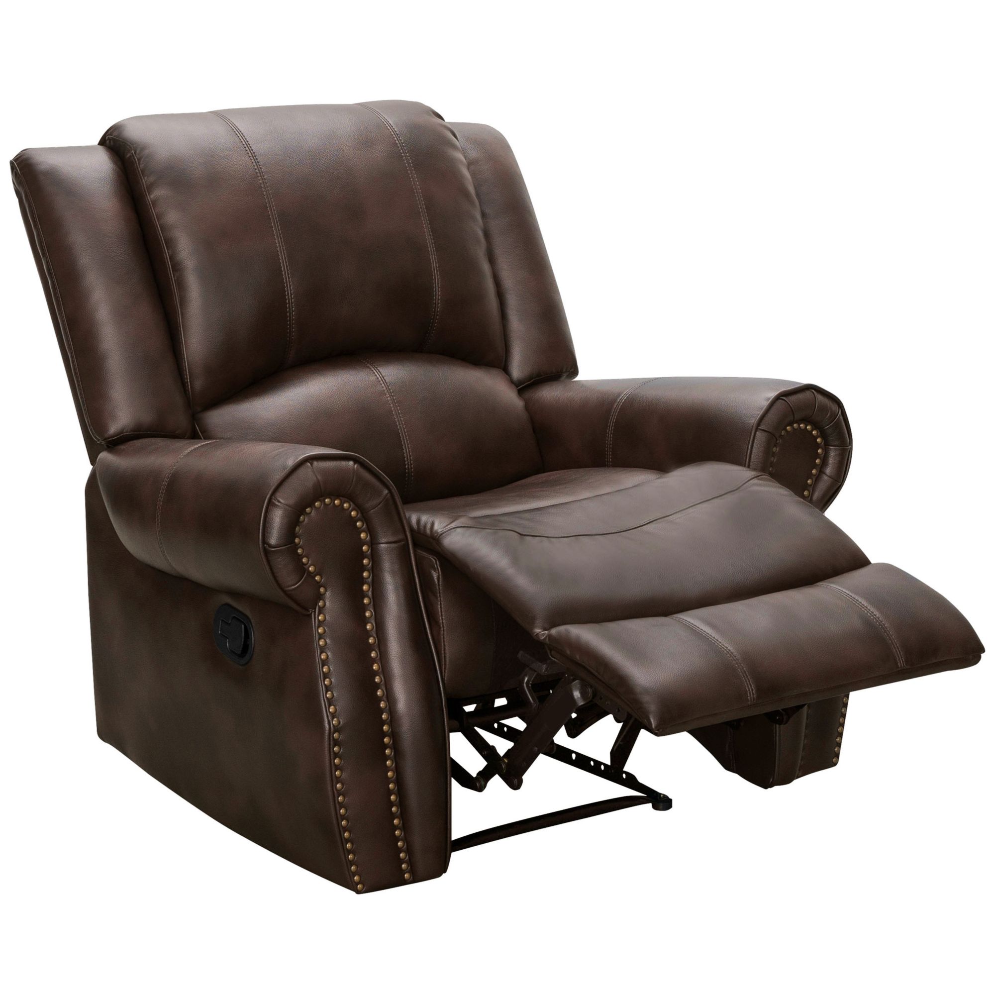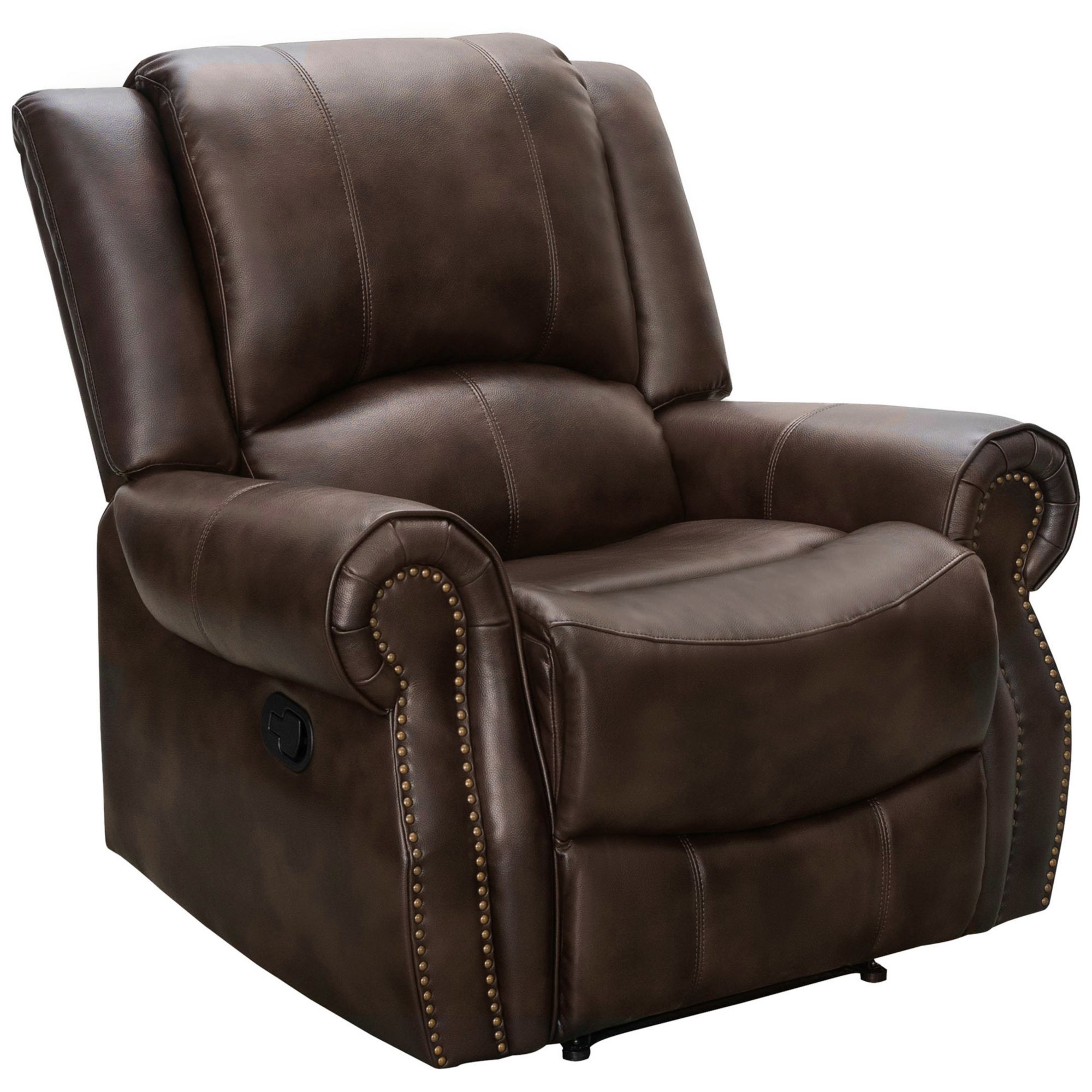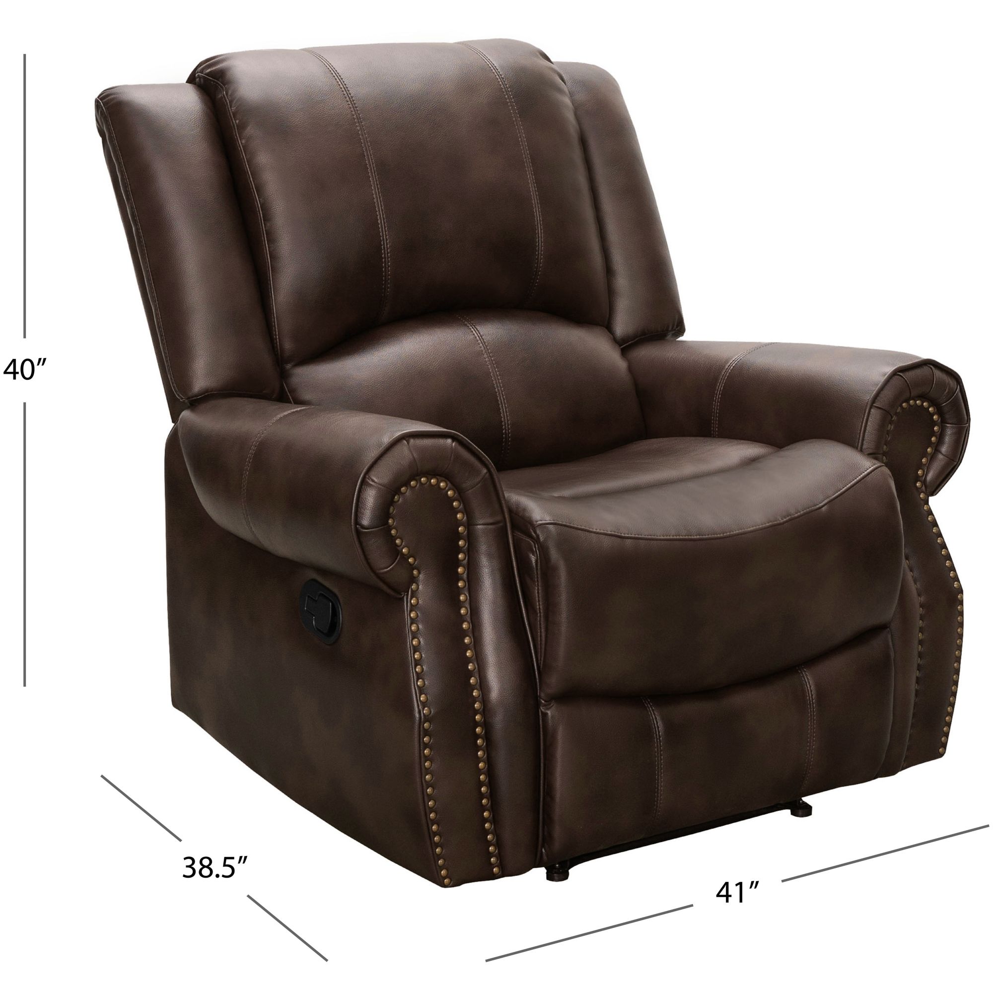 Invite friends and family over to relax in this indulgently soft Abbyson Spencer recliner. Equipped with a manual recliner for effortless relaxation and adorned with aged nail-head trim for a traditional touch to the durable upholstery. Reclines at the pull of a side-mounted lever for easy positioning.