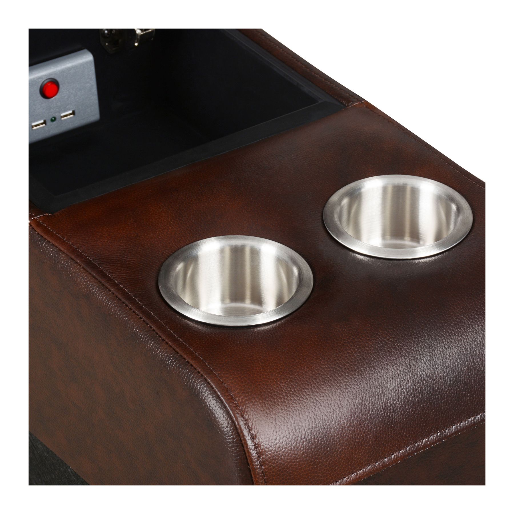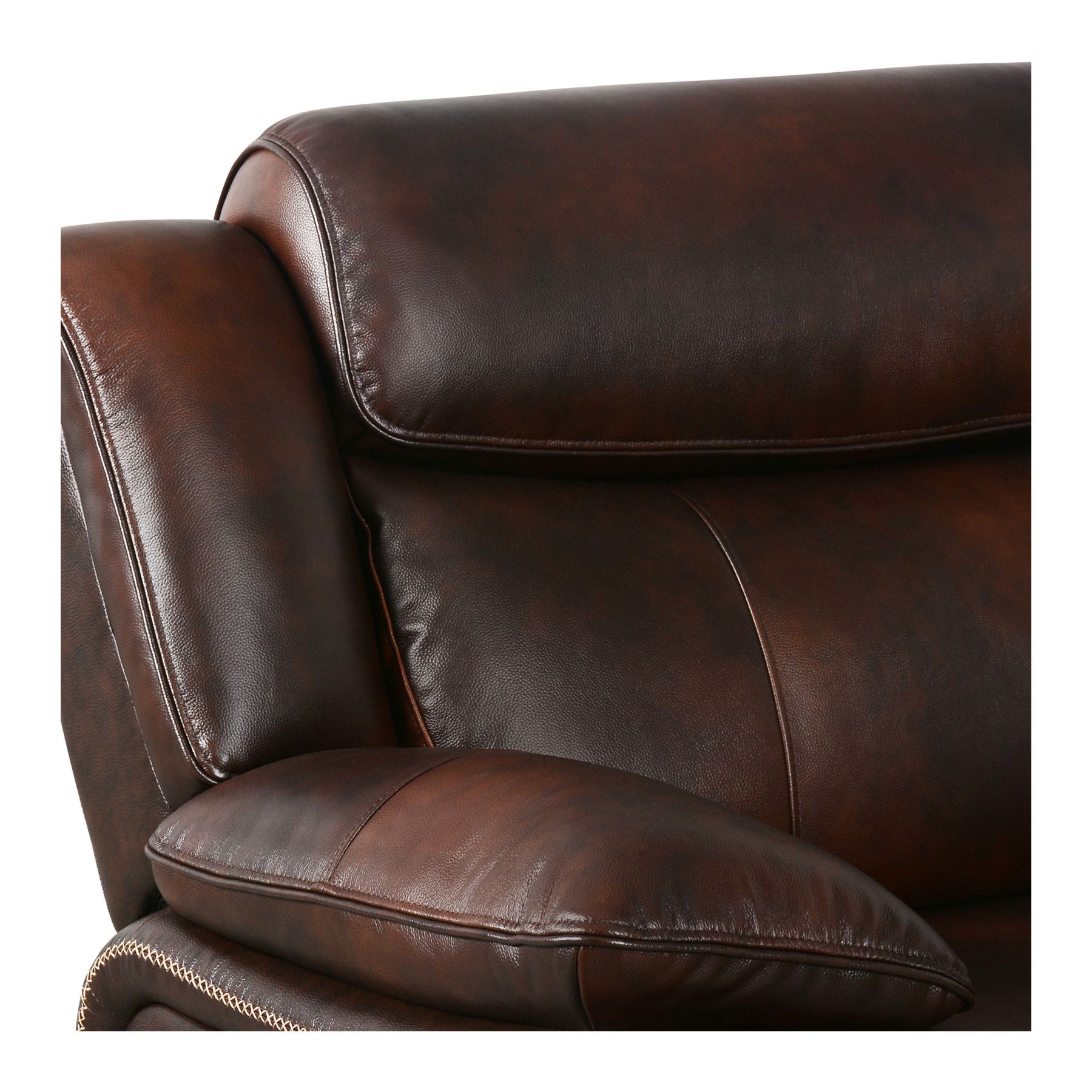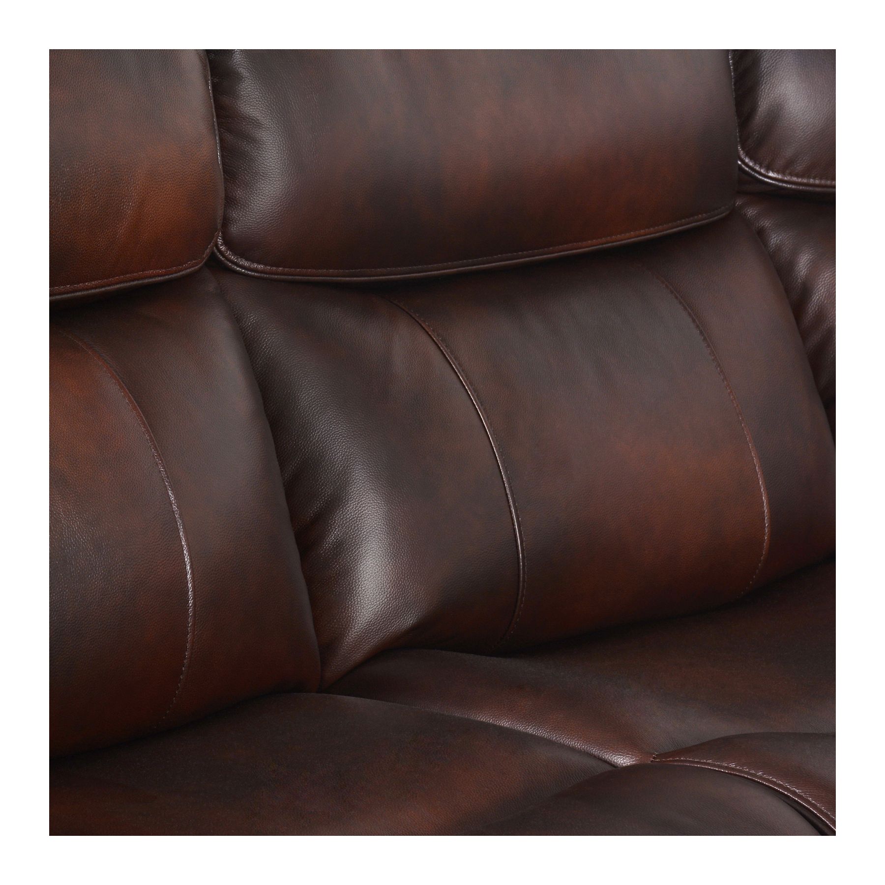 Beautiful top-grain leather upholstery on seating areas, armrests, and front panel