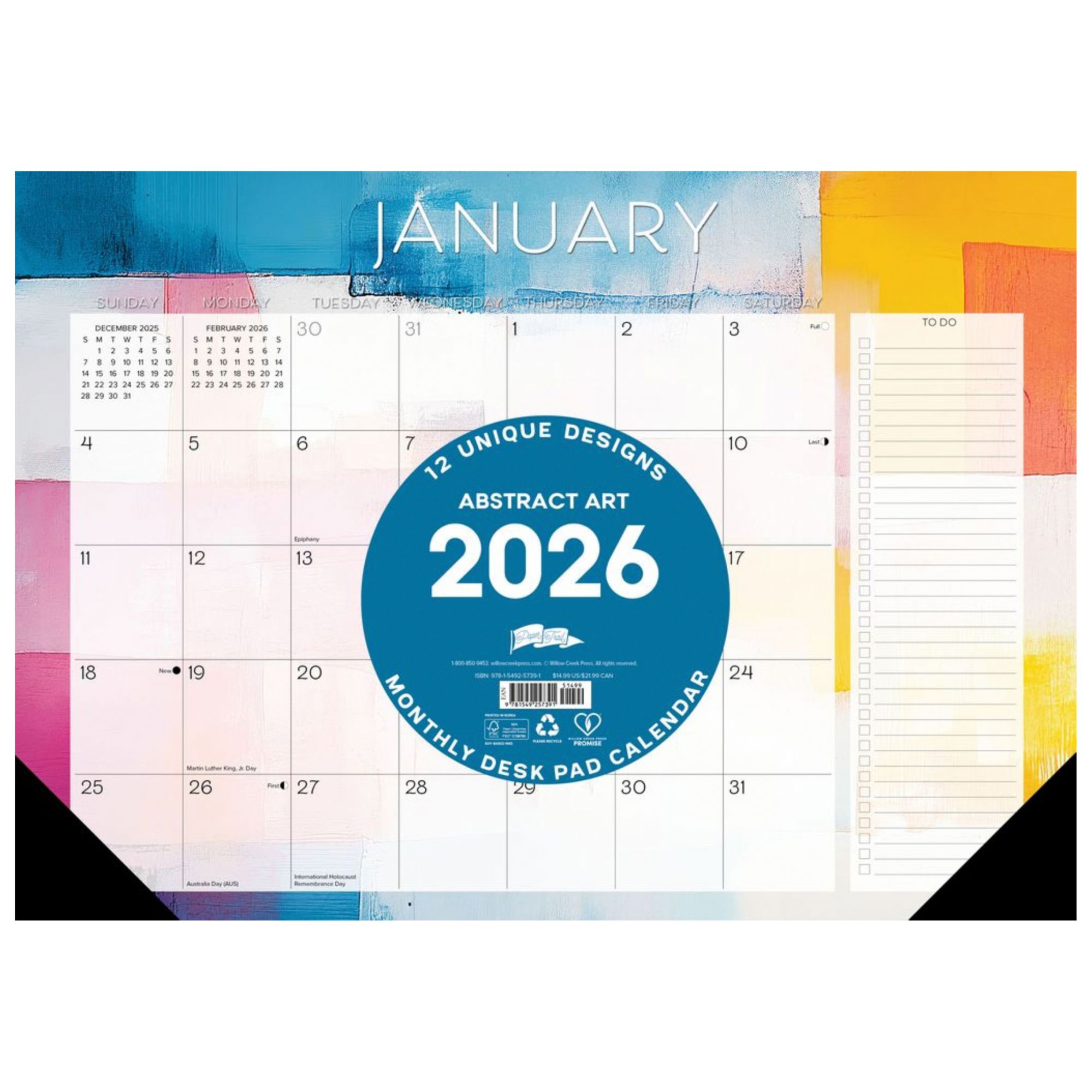 | Title | Abstract Art 2026 17" x 12" Small Monthly Desk Pad |