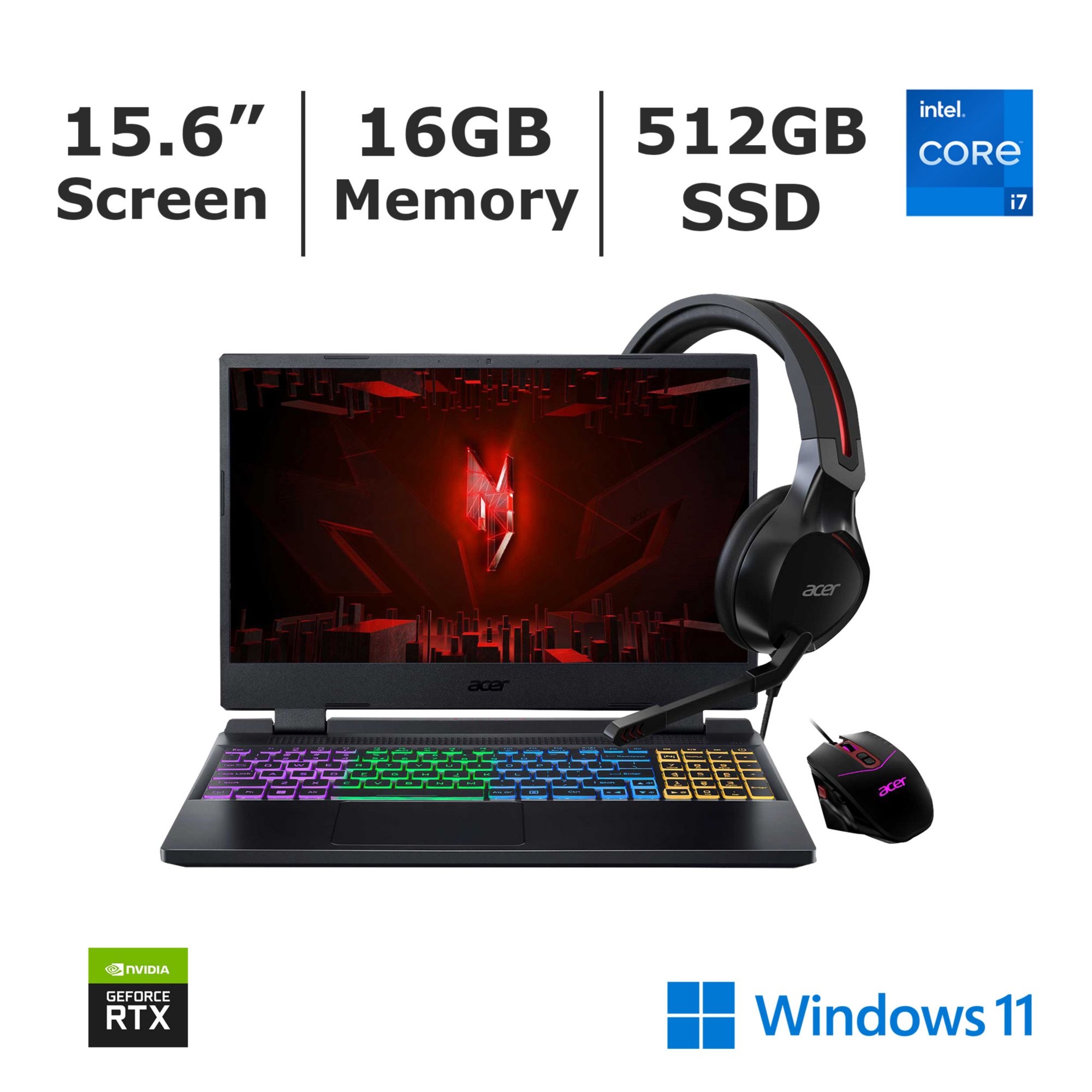 Acer Nitro 5 AN515-58-73RS 15.6" Gaming Laptop, Intel Core i7 Processor, 16 GB DDR5 RAM, 512GB PCIe Gen 4 SSD, Nvidia GeForce
