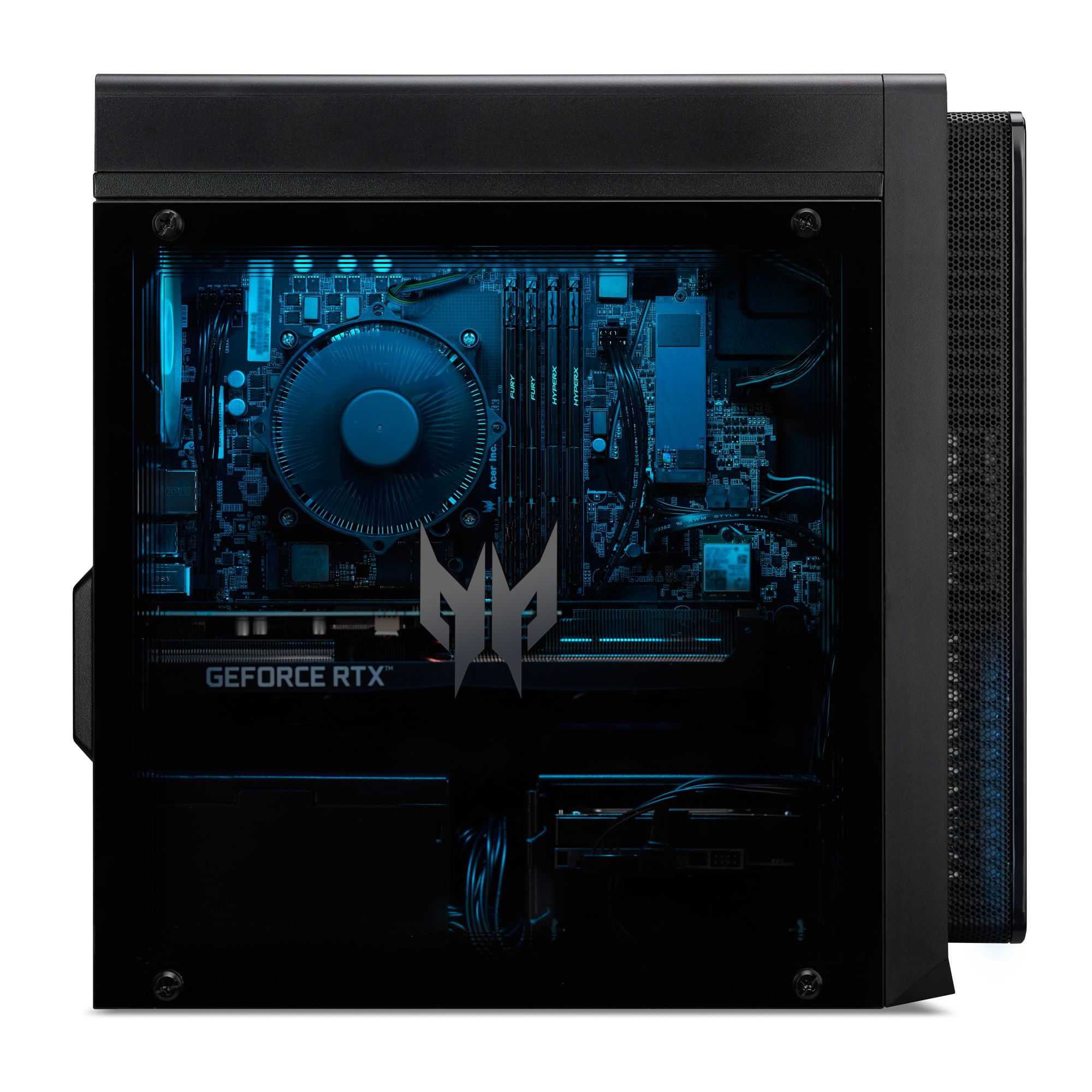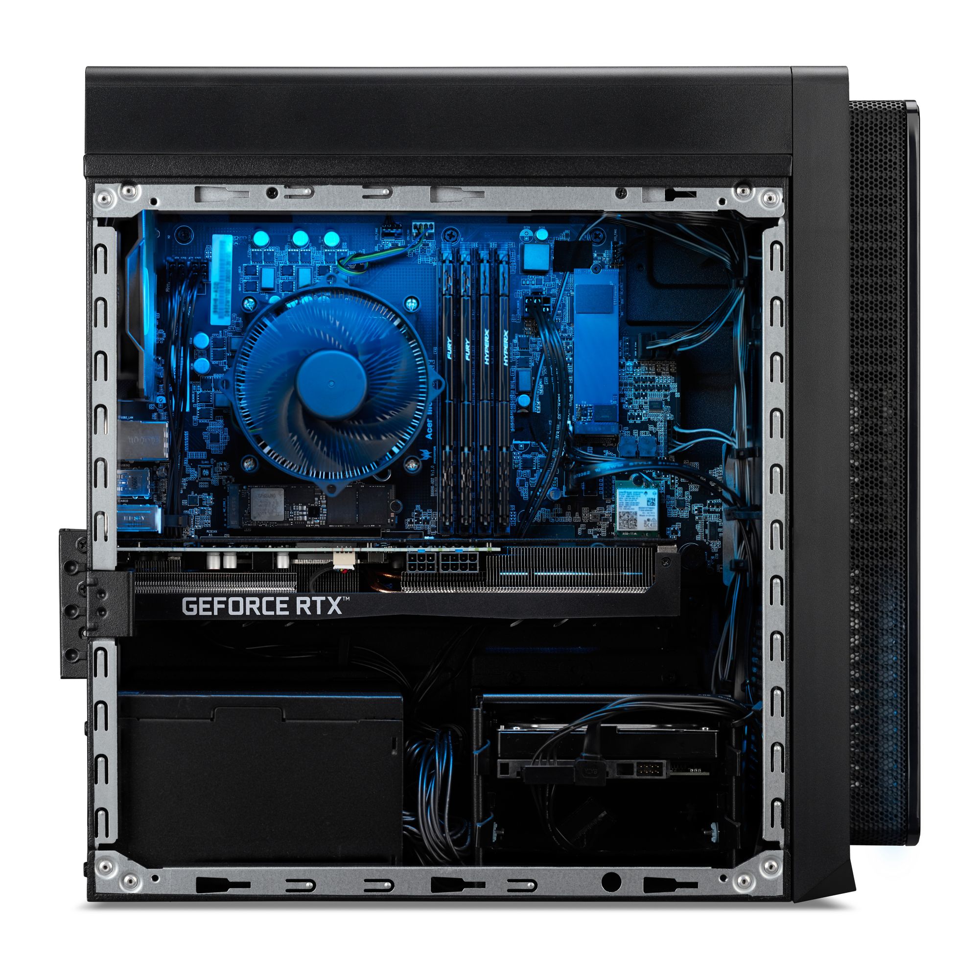 The fiery-accented, black metal Nitro 50 gaming PC sets the mood for an intense journey into the realm of gaming. The expertly crafted 18L chassis fits neatly on your desk or on the floor