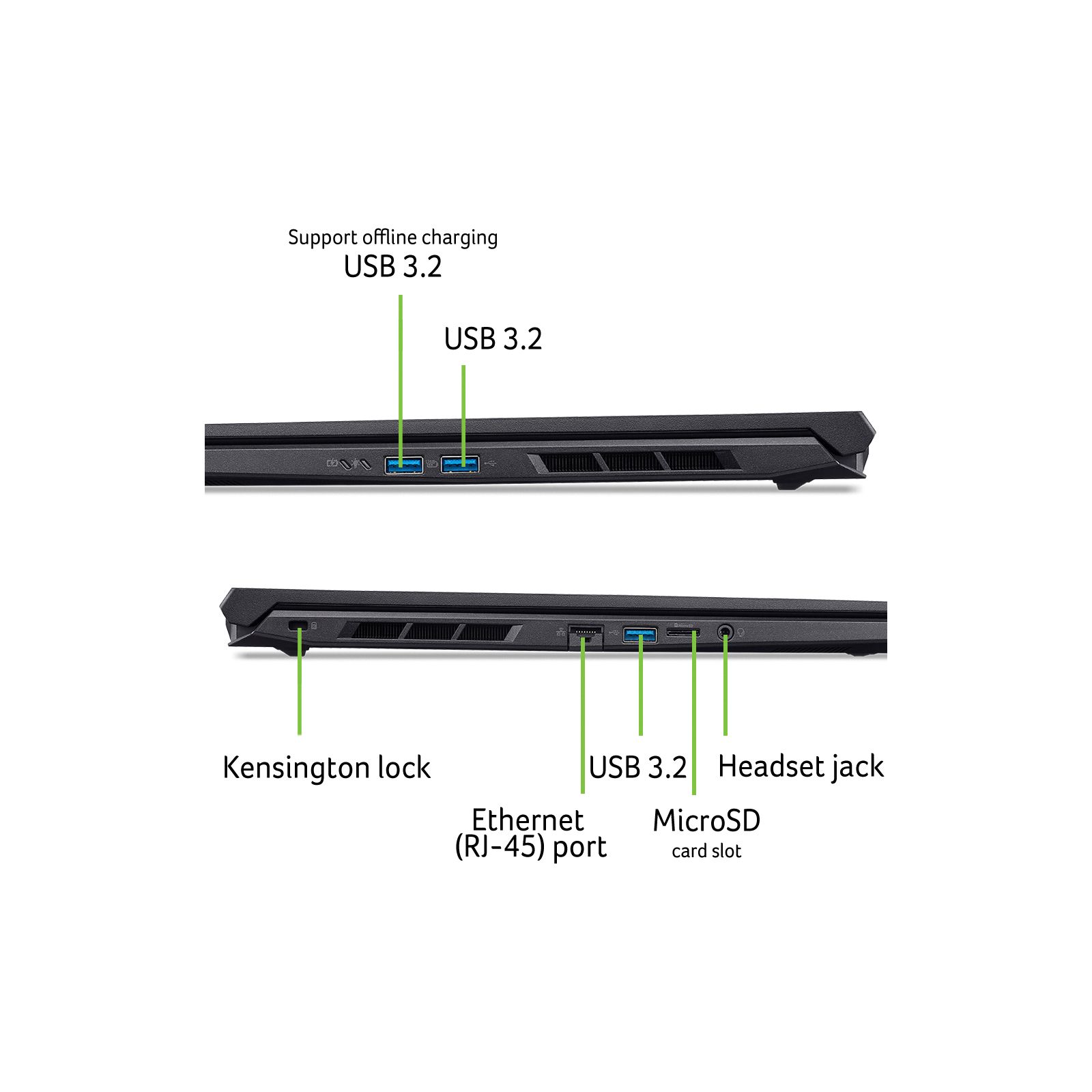 With the Intel Killer e2600 Ethernet controller and Intel Killer Wi-Fi 6 ax1650, you have all the tools you need to clear out the online competition. Plug all your peripherals into the full range of USB 3.2 Gen 2, including an incredibly fast Thunderbolt 4 USB-C port and HDMI 2.1. There’s even a micro SD card reader and a nitro wired headset