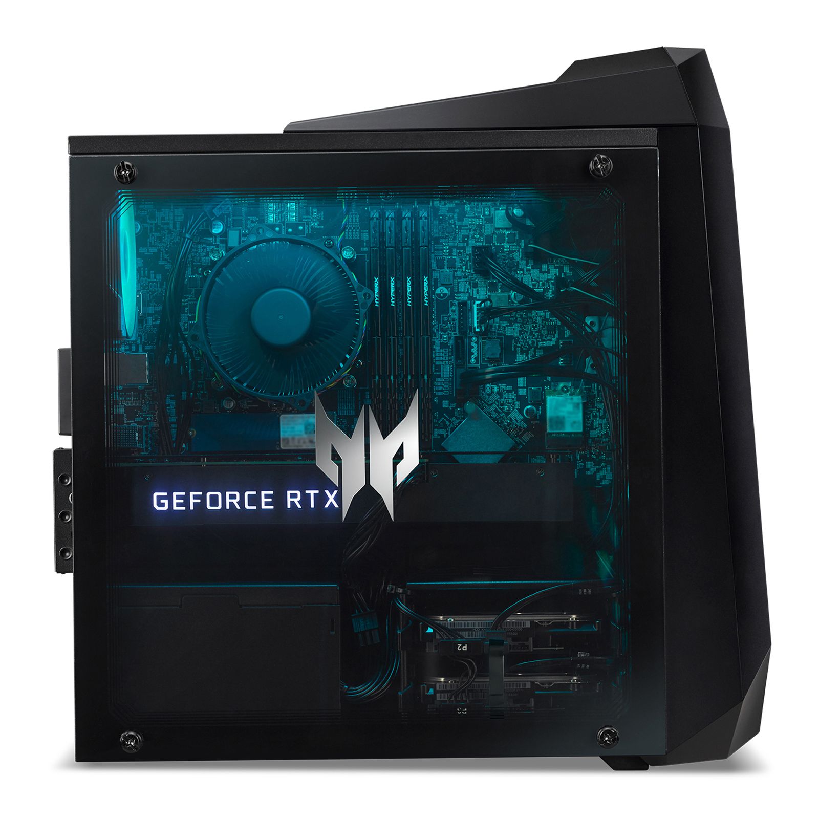 The Killer E2600 redefines gigabit network performance and includes Killer’s award-winning detection and prioritization technology for fast, immersive gaming and entertainment If you've wanted to attend a local LAN party recently and don't feel like reaching behind the PC just give the two front USB 3.2 Gen 2 ports (Type-A & Type-C) and ever-convenient audio jacks a go. The newly designed case makes it easy to add a personal touch to your desktop. Customize the lighting of the vertical light bars at the front of the case as well as the two Predator FrostBlade fans via PredatorSense – up to 16.7 million colors. Inside, two LED fans to keep your system cool and unthrottled. Get ready for an unforgettable gaming experience that ignites the senses and takes your passion to new heights.
