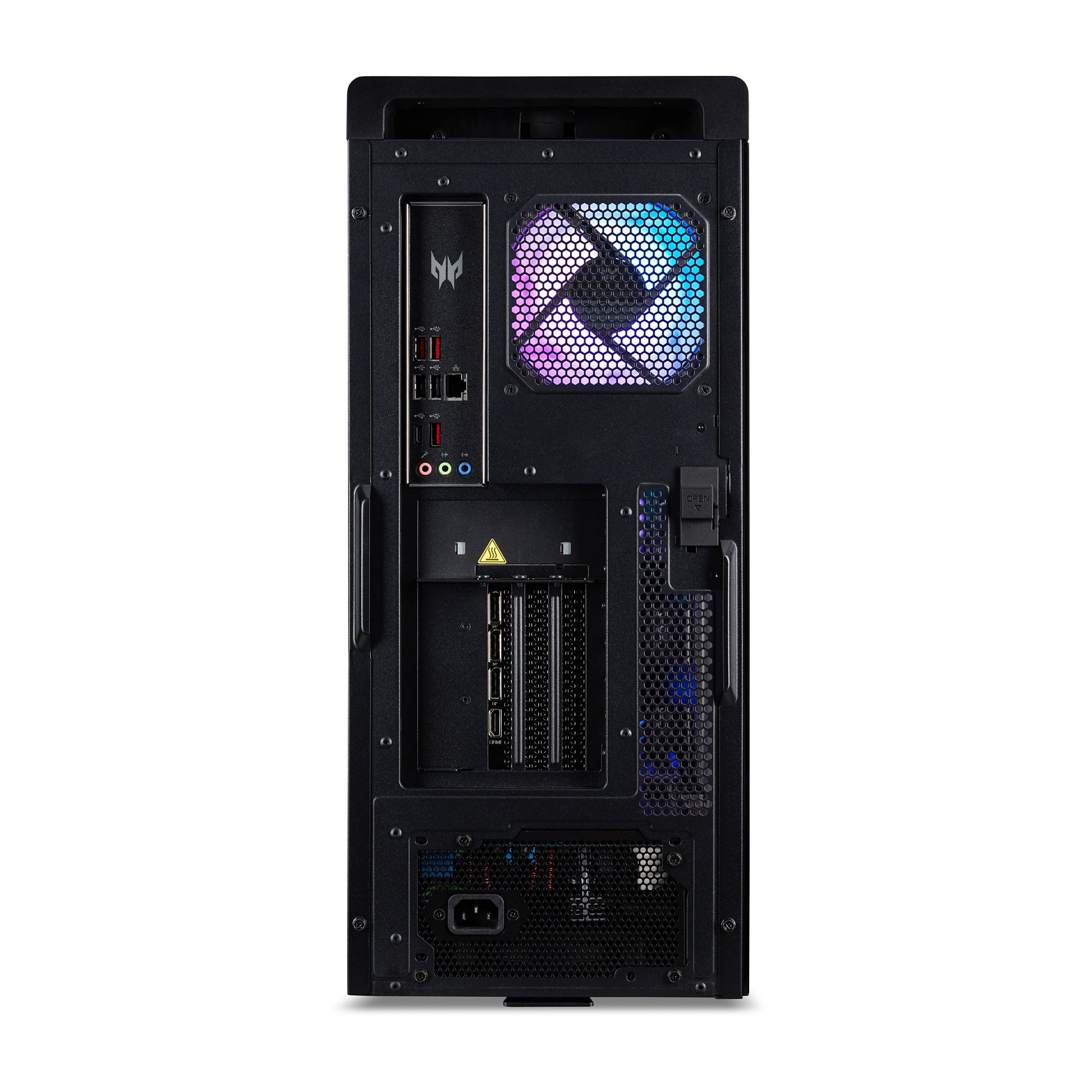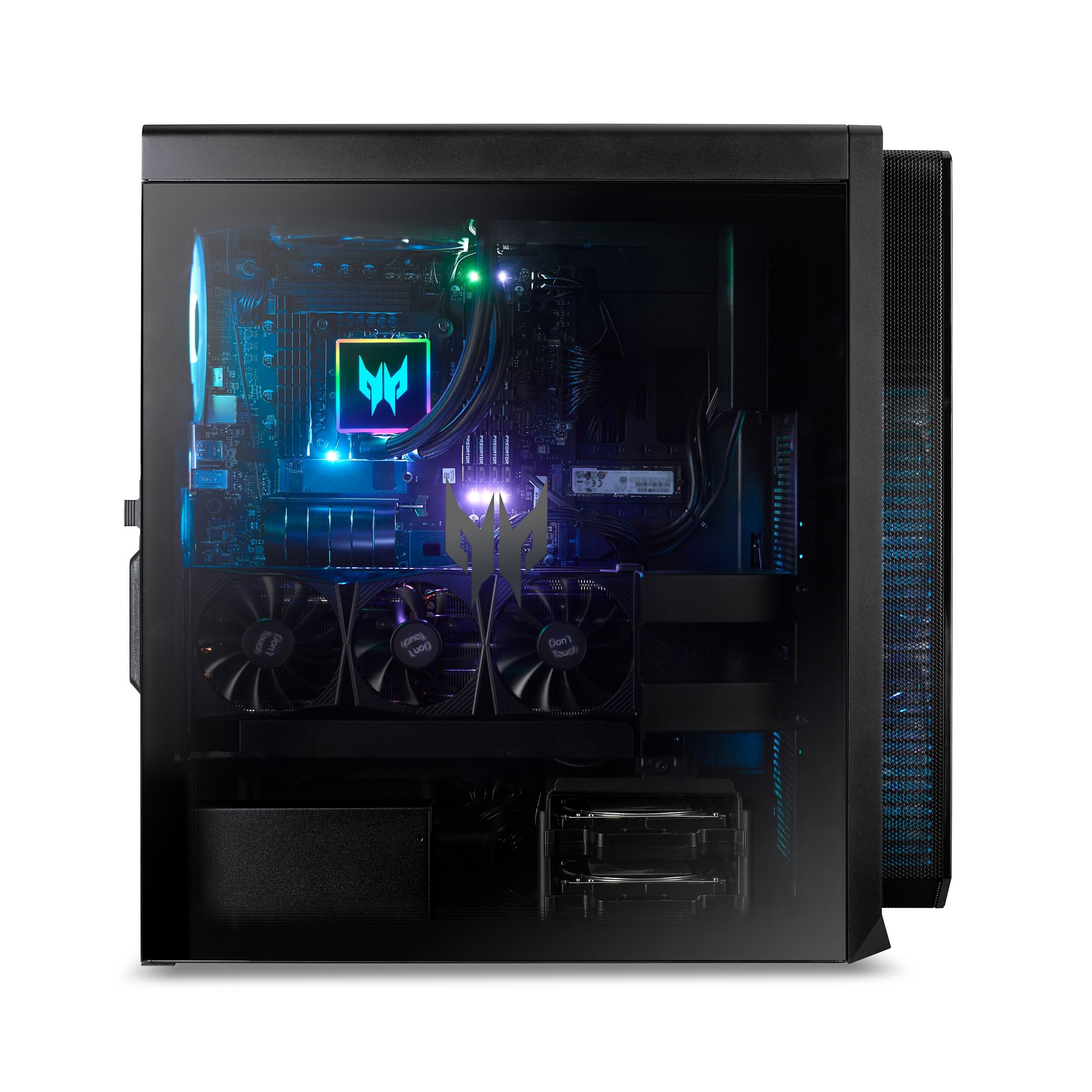 Includes desktop, predator RGB gaming keyboard and predator RGB gaming mouse, see-through EMI-compliant tempered glass panel, power cord