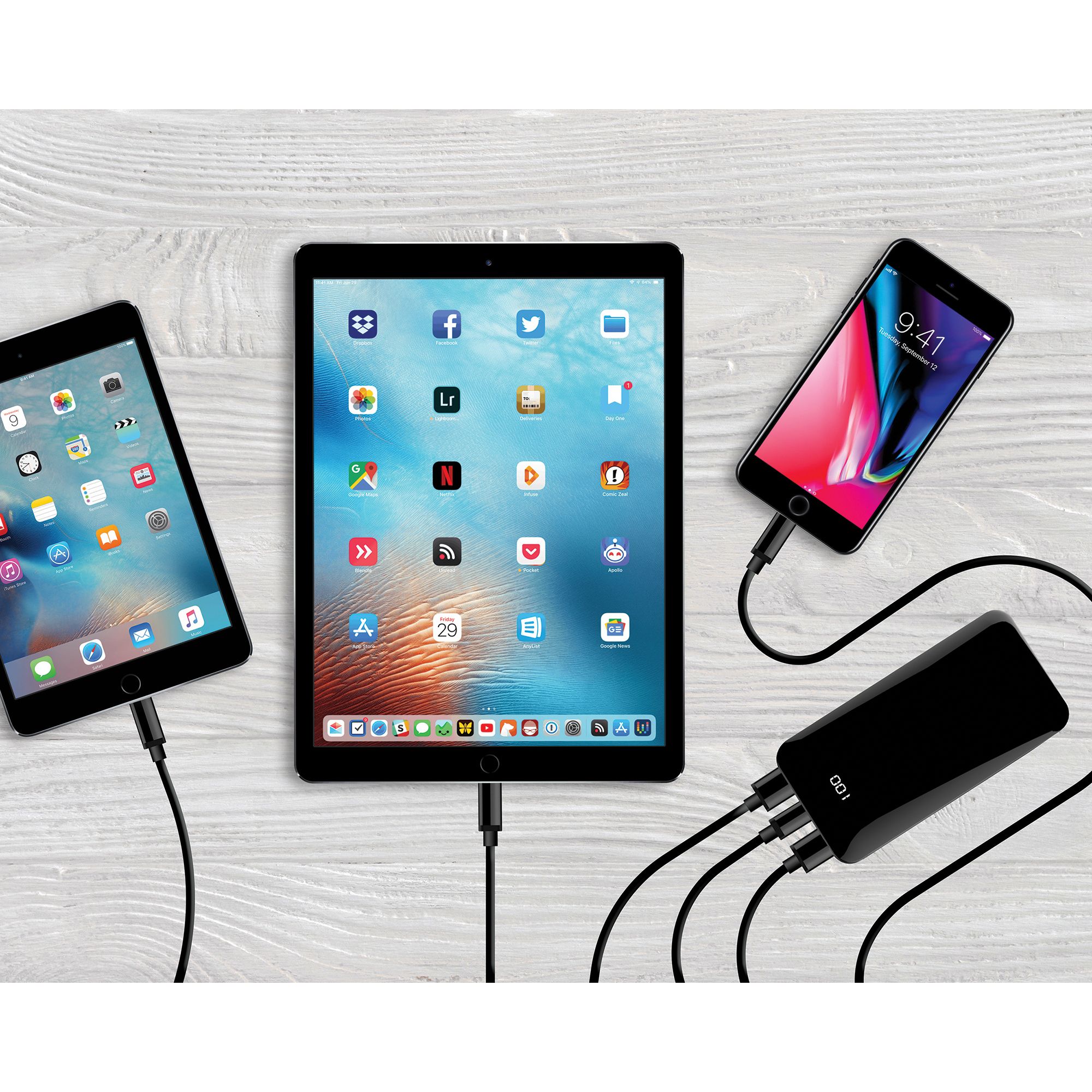 Charge your devices multiple times while on-the-go 10000mAh battery USB Type-C charging connector can charge even the newest devices Dual USB ports with two universal charging ports, compatible with most portable devices LED display battery level is hidden behind the glossy finish Slim body measures at only 0.6” thin and easy to slip into any pocket Up to 2.1 Amps of power to re-charge the PowerStick10 or your own devices Dual input ports allow you to re-charge the PowerSlim10 using either USB Type-C or MicroUSB Glossy black front and rubberized patterned back finishes add to premium design and feel 2.1 Amps input and 1 Amp and 2.1 Amps outputs Dimensions: 5.4"L x 2.7”W x 5.4” x 0.6”H Includes Acesori PowerSlim10 Thin 10000mAh Power Bank