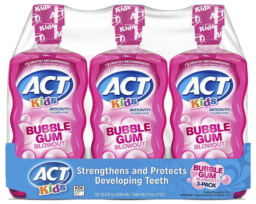 Gives your kids clinically proven cavity protection Strengthens teeth and prevents cavities Freshens breath at the same time Comes in great tasting bubblegum flavor that kids love Has ADA Seal of Acceptance Includes three count of ACT Kids Bubblegum Blowout Anti-Cavity Rinse, 16.9 oz. each
