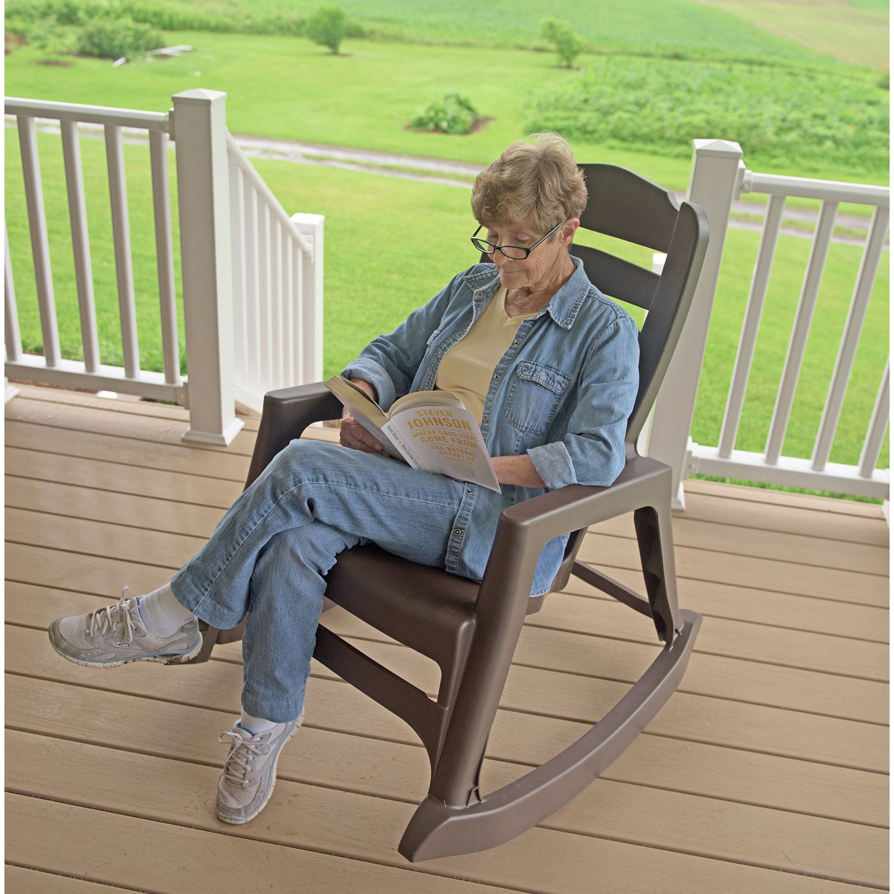 The first of its kind, Adams' Stacking Rocking Chair recalls the carefree days of summer, blending the best qualities of resin into an iconic favorite. From the porch to the deck, Adams' rocking chair is designed for long-lasting comfort. The curved seat and comforting back support delivers a relaxation that rivals the classic wooden rockers of yesteryear, incorporating a smooth and peaceful rocking action. More affordable and easier to maintain than wood, Adams' Stacking Rocker is built from high-quality resin for all-weather performance and it holds up to 350 lbs.