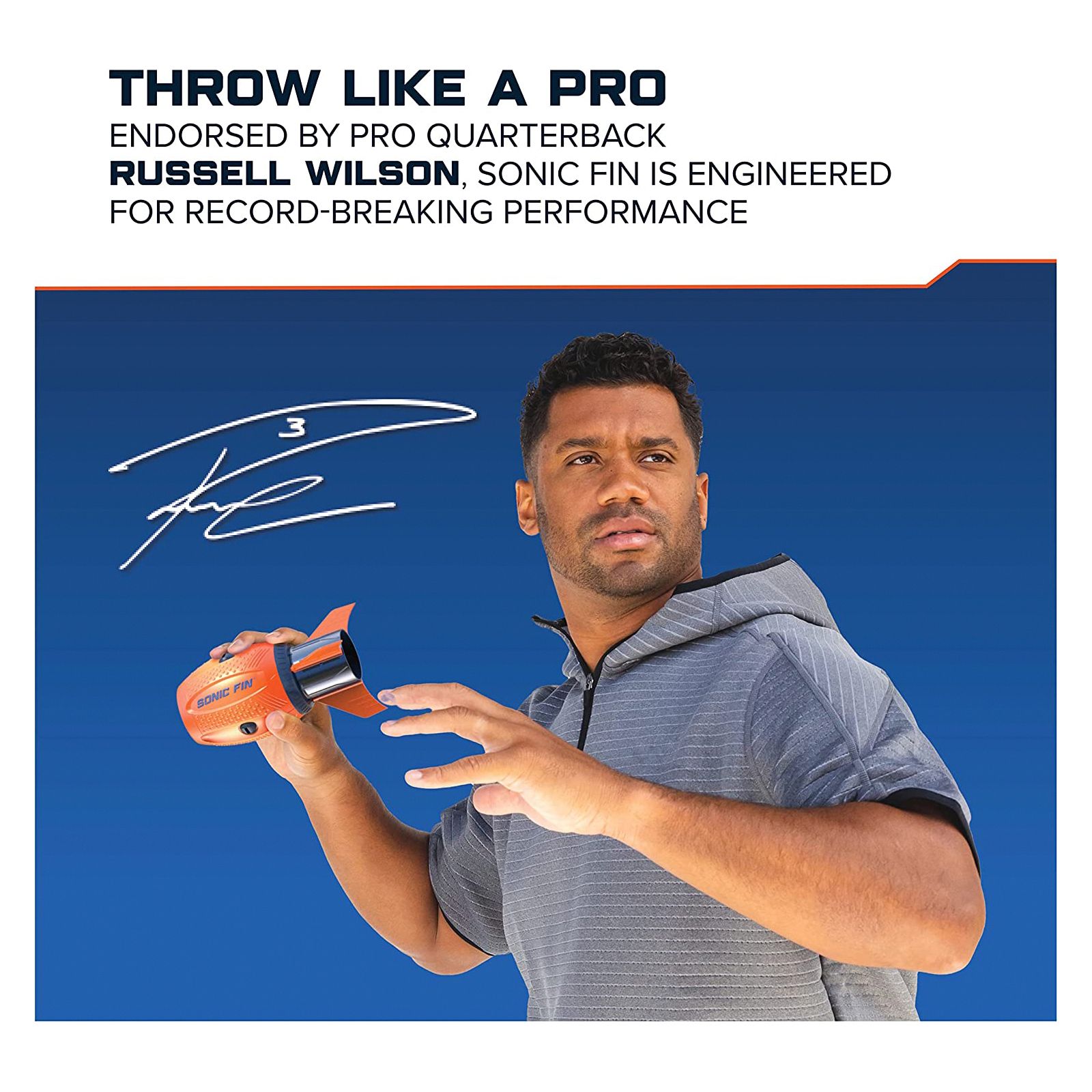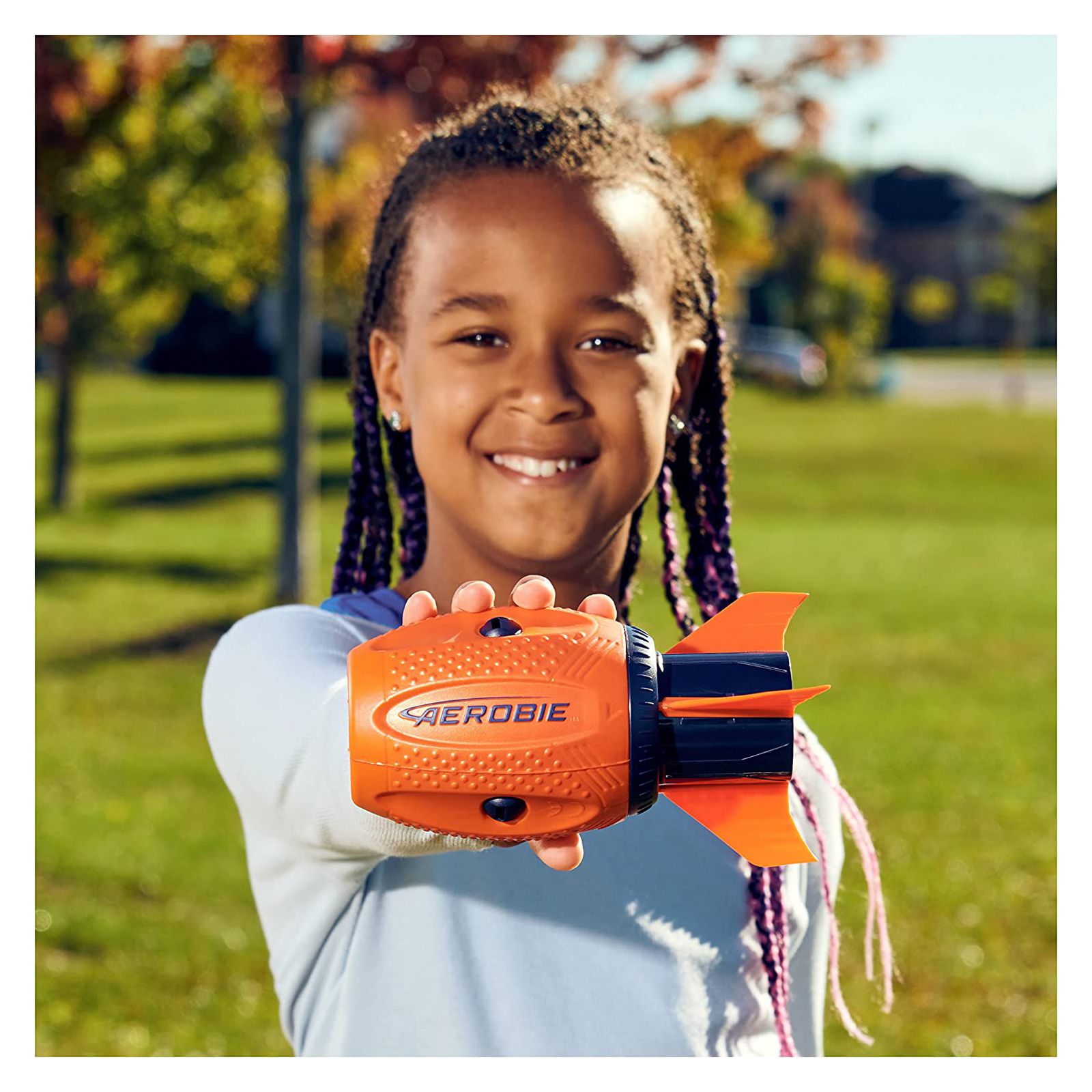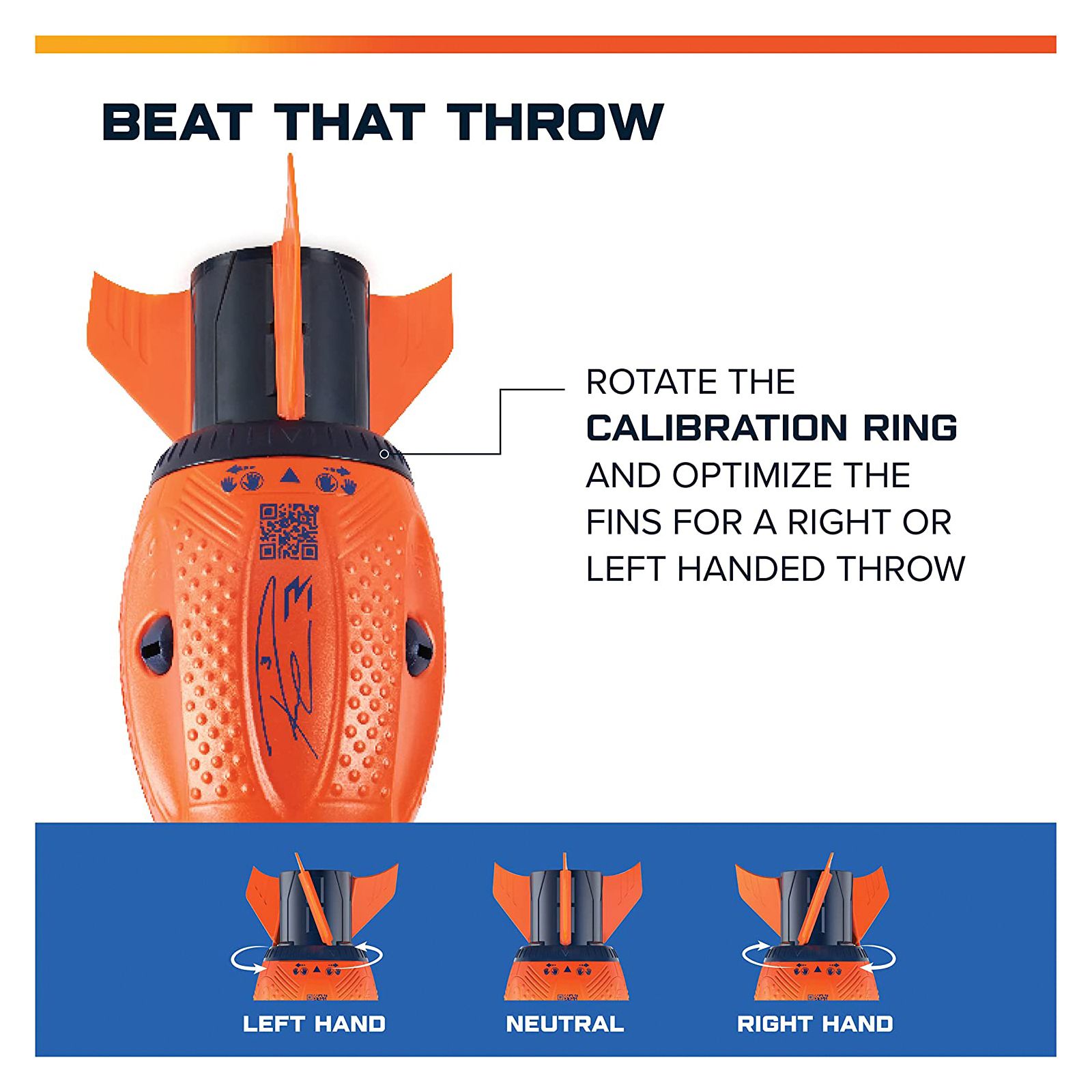 Go long - really long - with the Aerobie Sonic Fin Football. The innovative design of this toy football creates incredible aerodynamic lift in the air, resulting in throws traveling up to 100 yards. The precise balance of the ball makes it easier to throw spirals and the adjustable fins can be moved based on the player's spin rate for maximum distance. It whistles when it flies, adding to the fun.