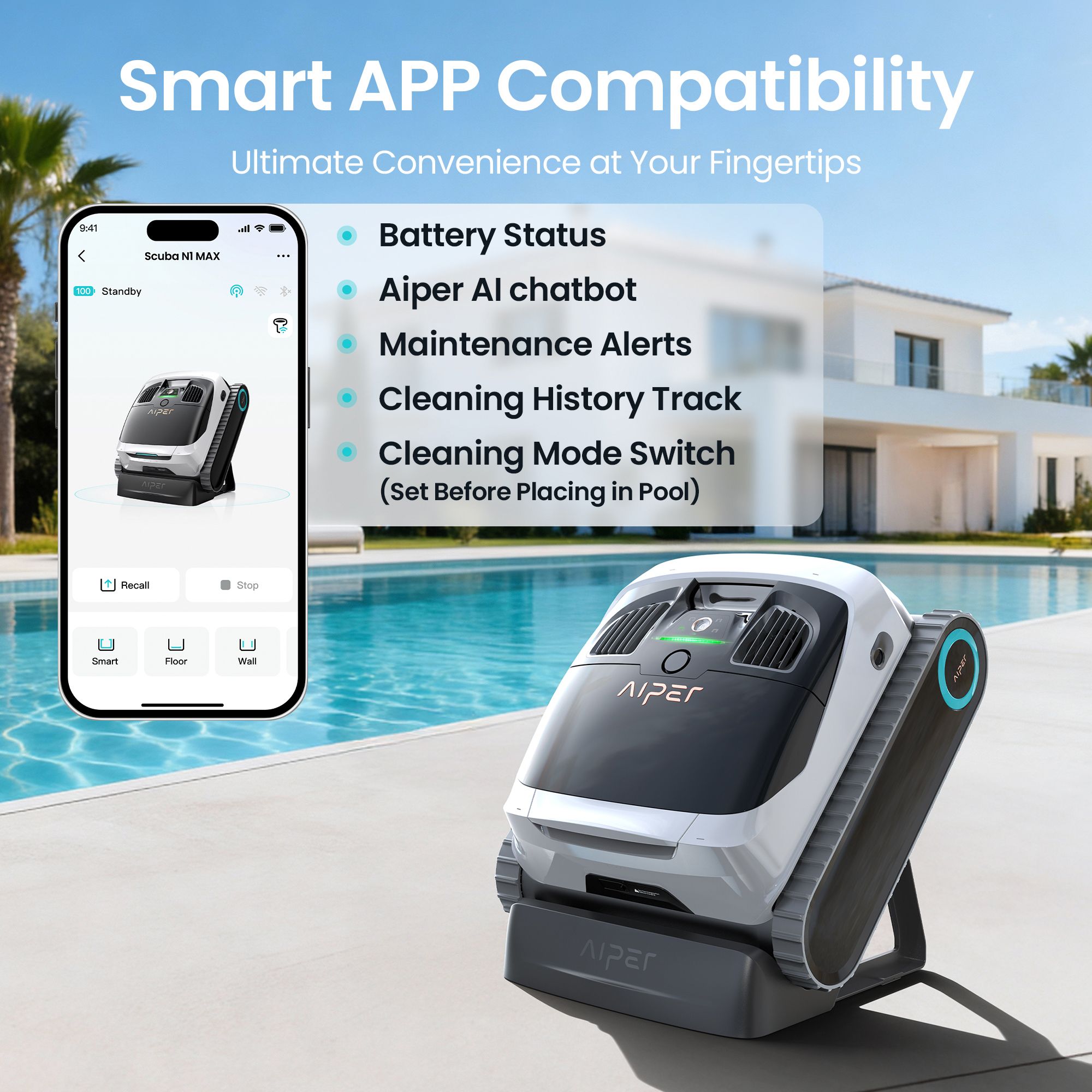 Aiper Scuba N1 Max Adaptive Robotic Pool Cleaner: with Wave Line Cleaning for in-Ground Pool