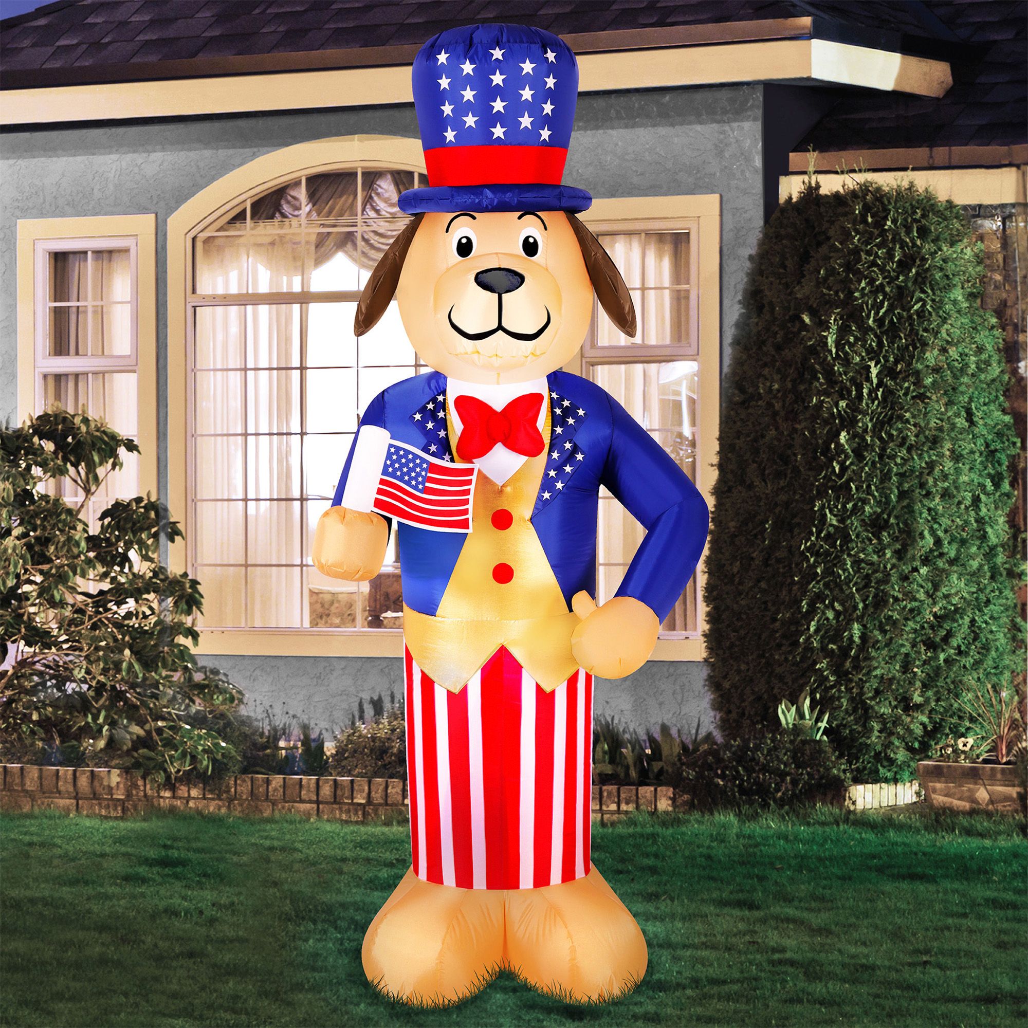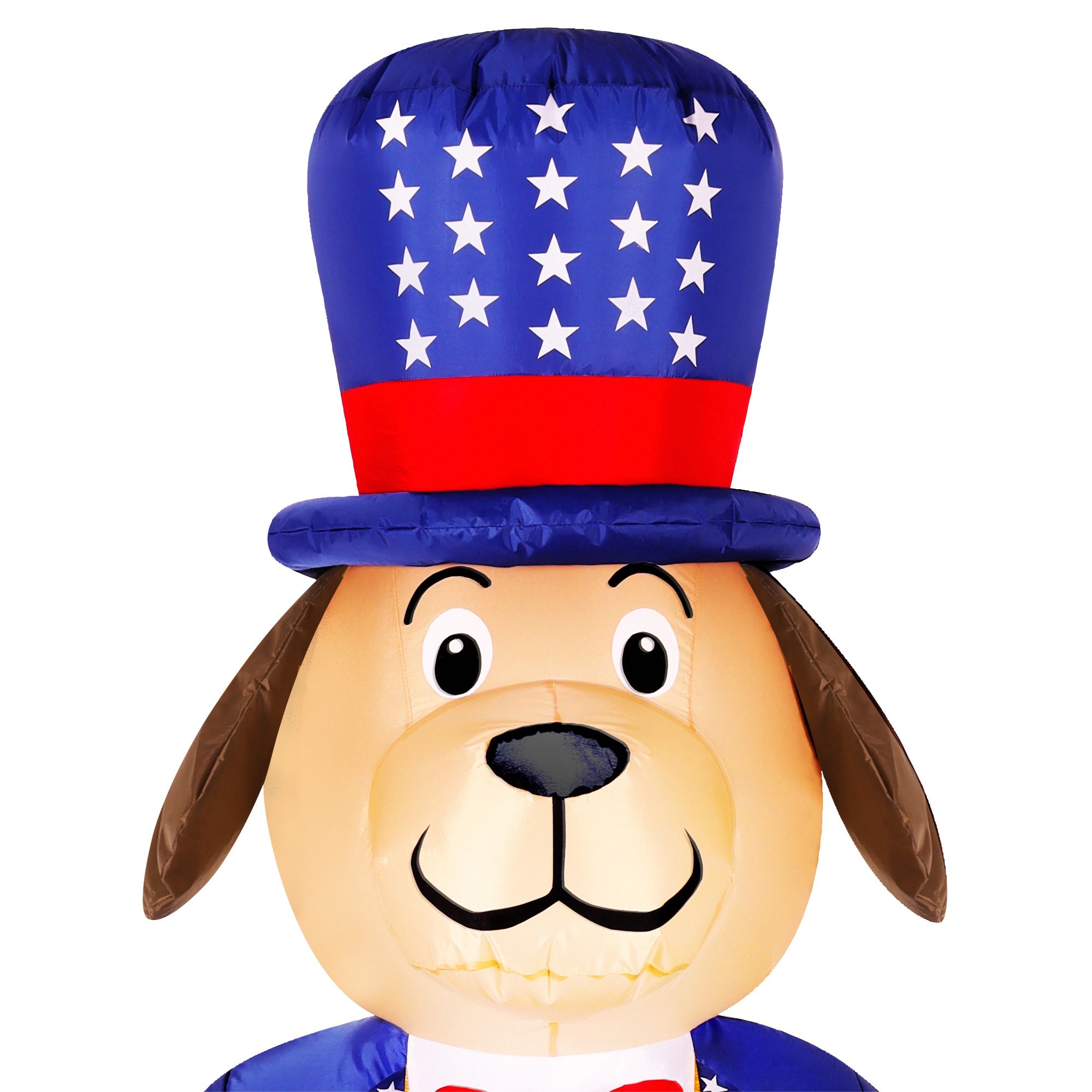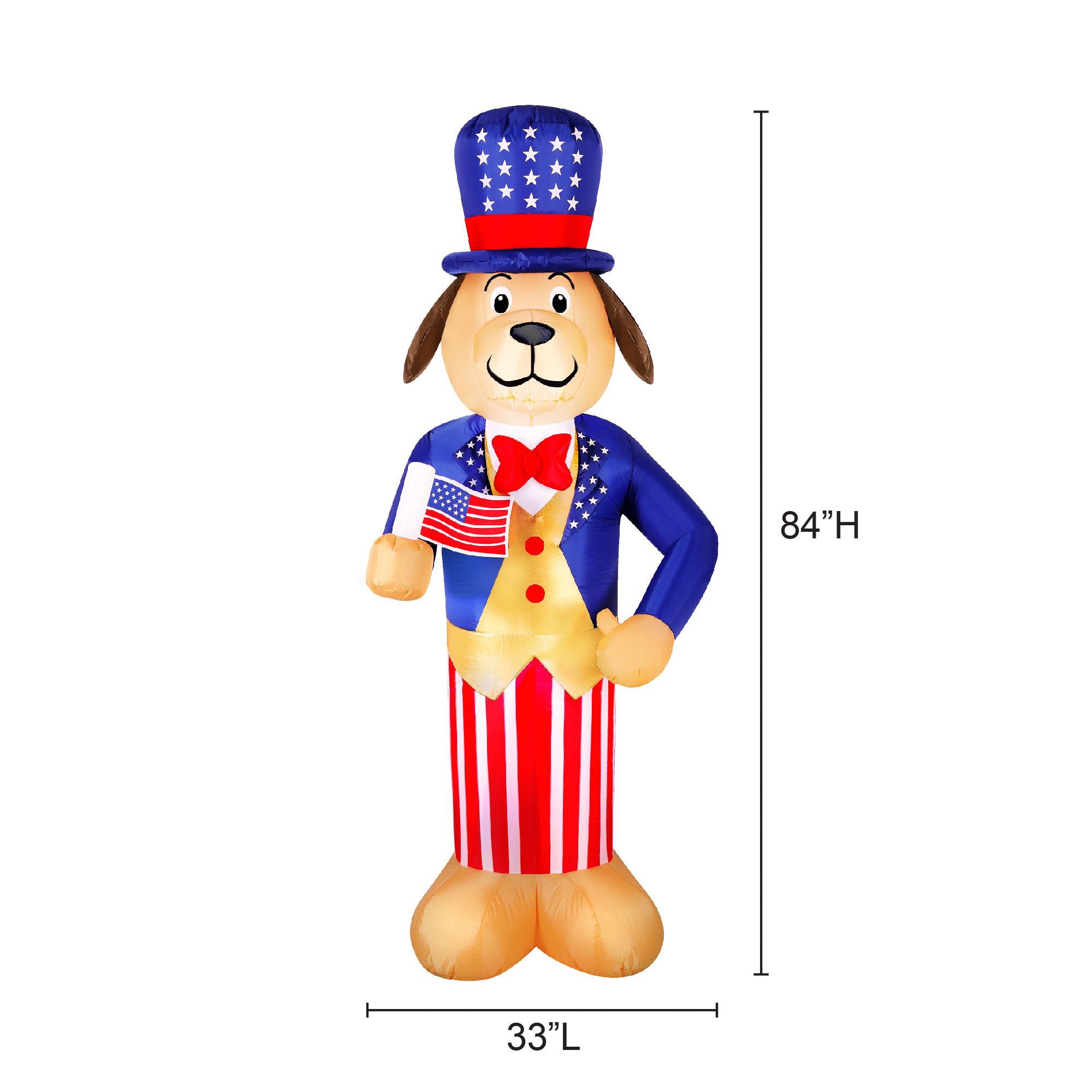 The Inflatable 4th of July Dog typically features a larger-than-life depiction of an adorable dog designed to celebrate patriotic themes. It stands at an impressive 7' tall, making it a bold and eye-catching display for lawns, events, or parties. This inflatable is a fun and vibrant way to showcase patriotism while adding a playful touch to your decor.