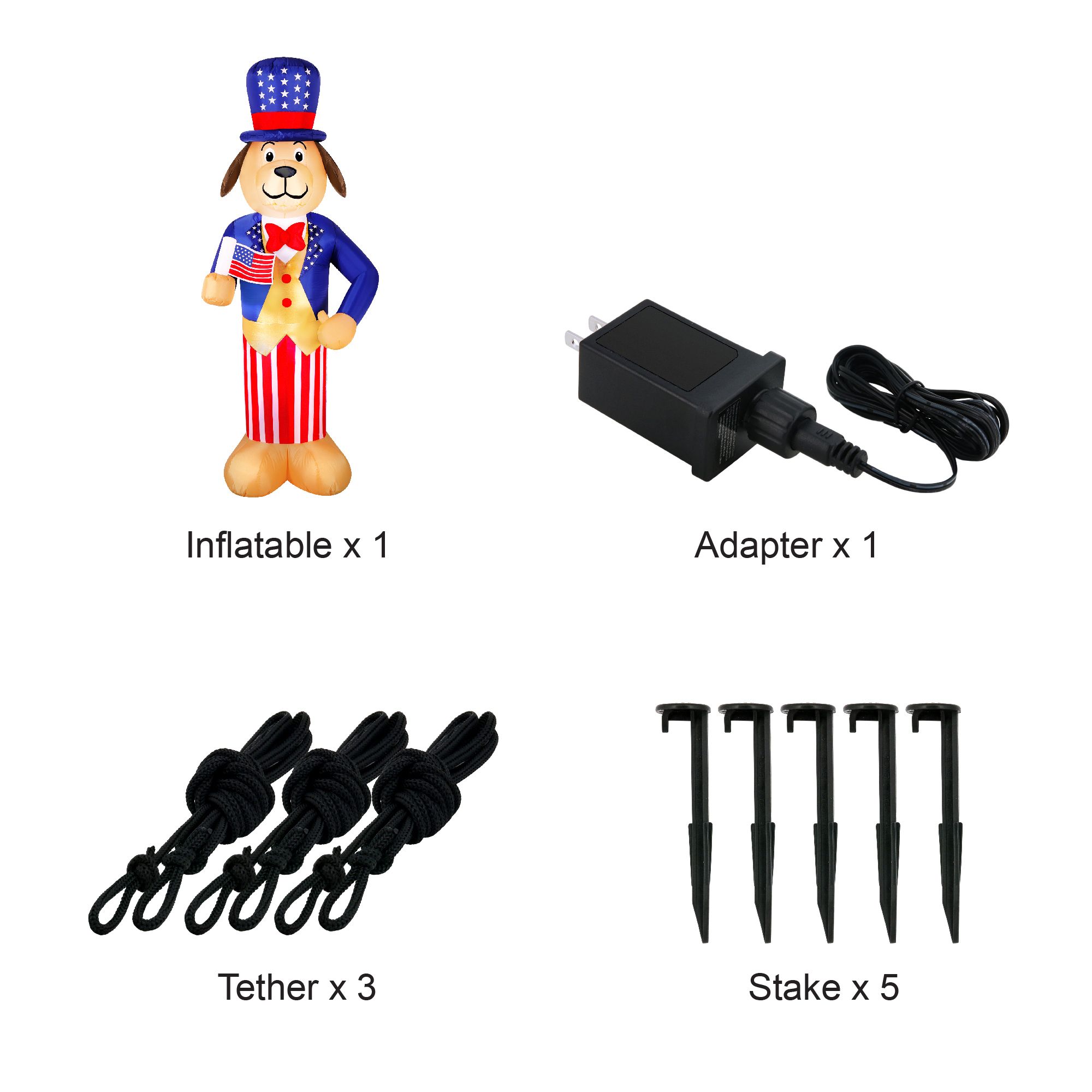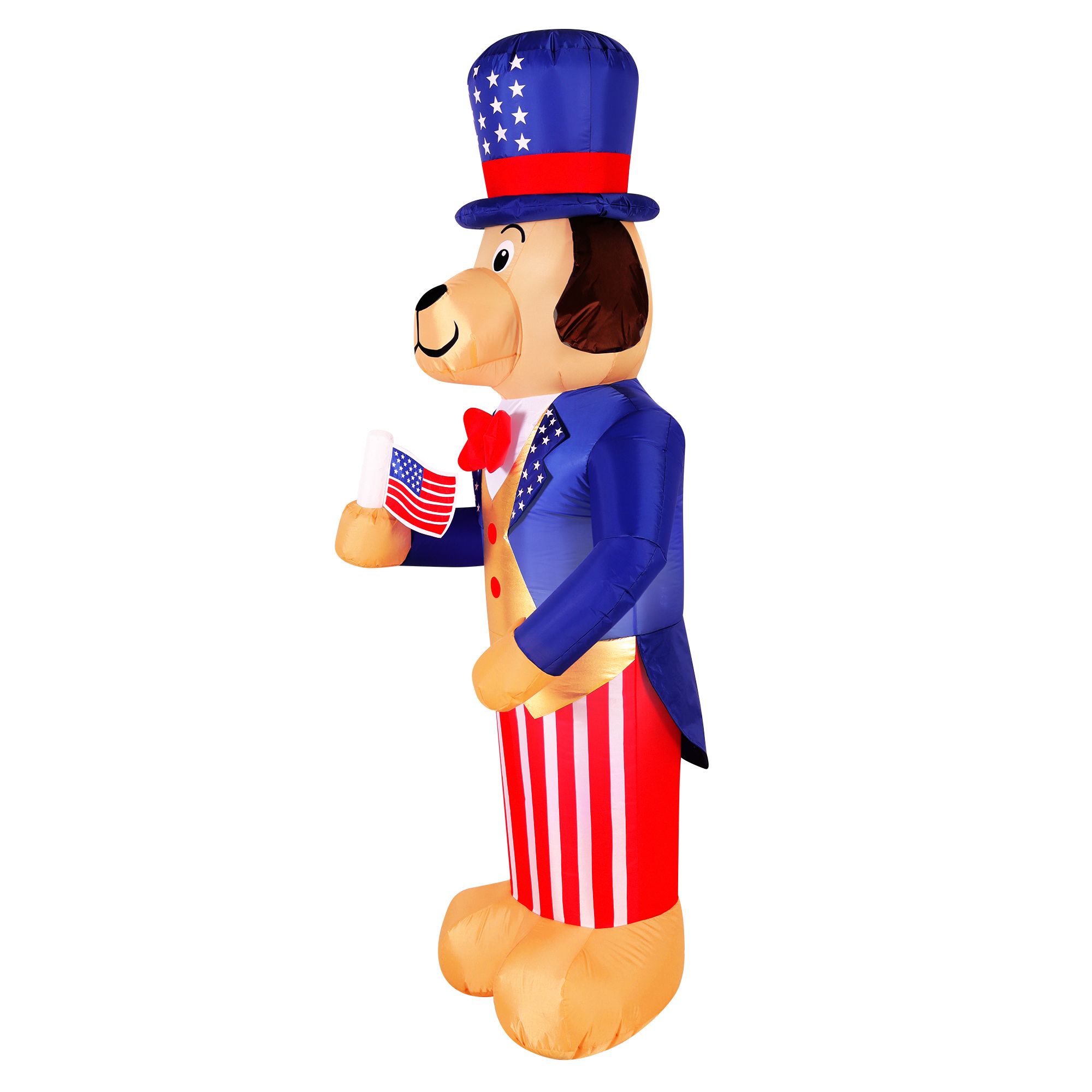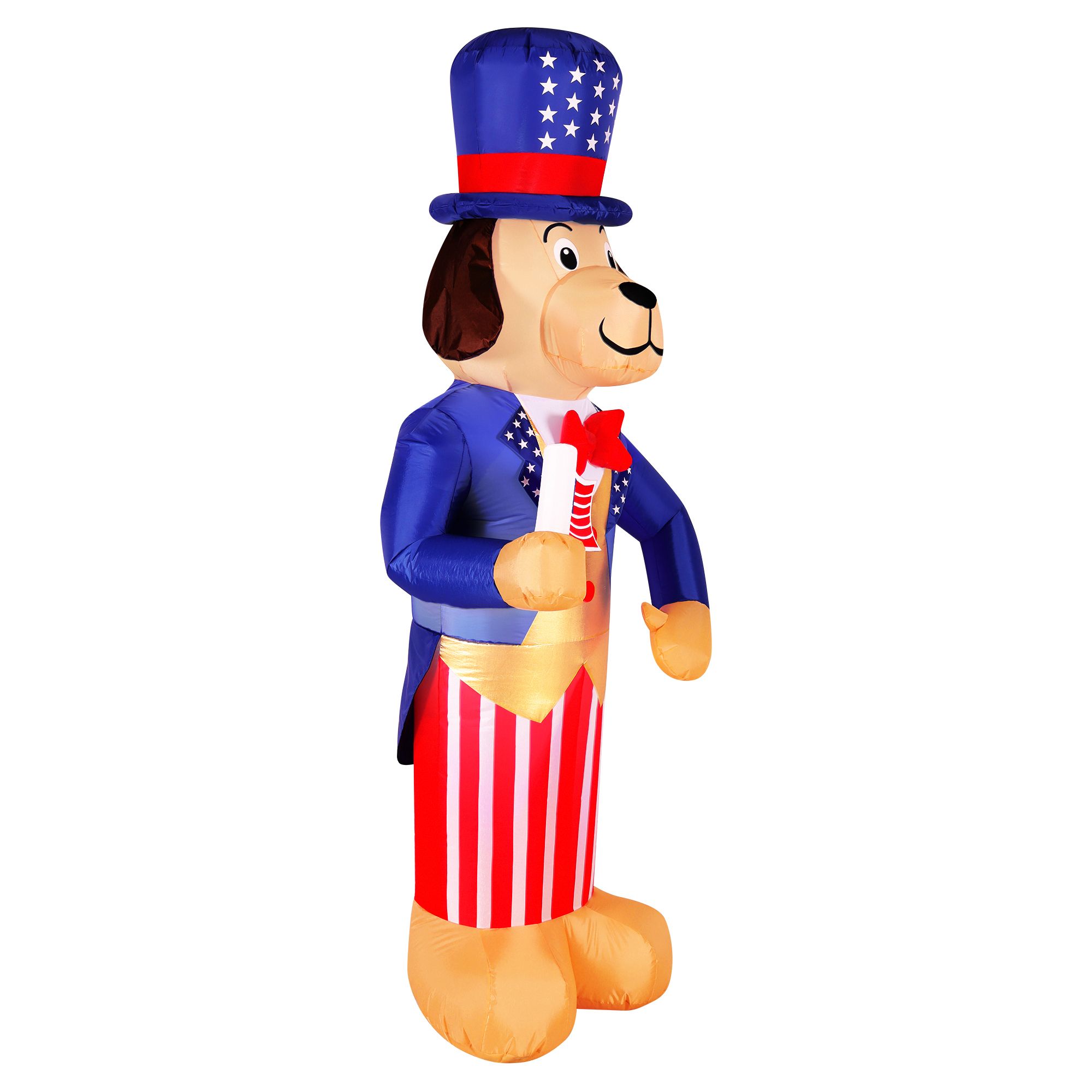 The Inflatable 4th of July Dog typically features a larger-than-life depiction of an adorable dog designed to celebrate patriotic themes. It stands at an impressive 7' tall, making it a bold and eye-catching display for lawns, events, or parties. This inflatable is a fun and vibrant way to showcase patriotism while adding a playful touch to your decor.