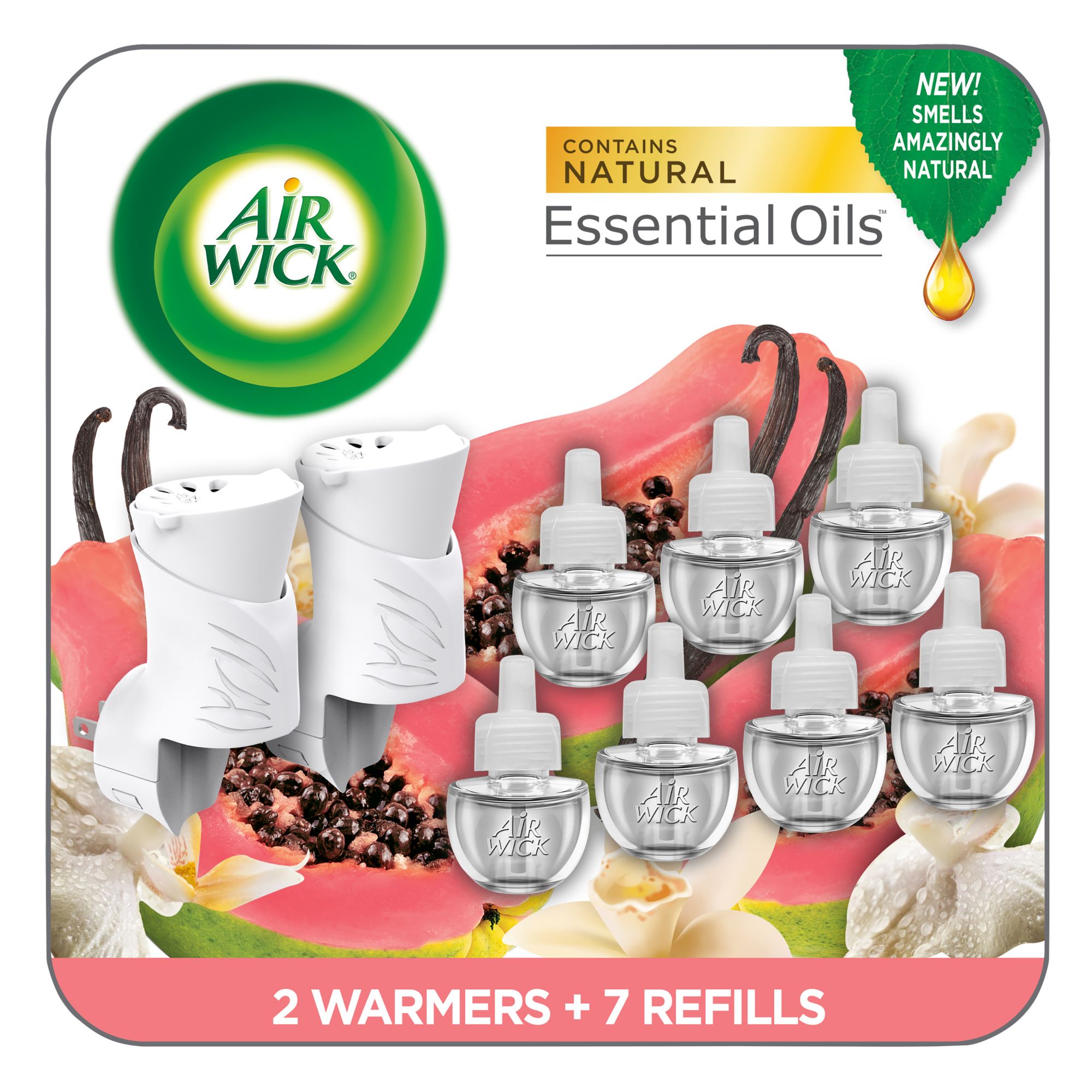 2 Warmers + 7 Refills Fragrance smells amazingly natural. Formula reformulated so you can experience natural-smelling fragrances day after day Infused with 100% natural essential oils for a better fragrance experience Provides up to 60 days of continuous and long lasting fragrance per refill based on low setting Easy Adjust with 5X fragrance settings Use in any room: living room, bathroom, bedroom, hallways, kitchens & office