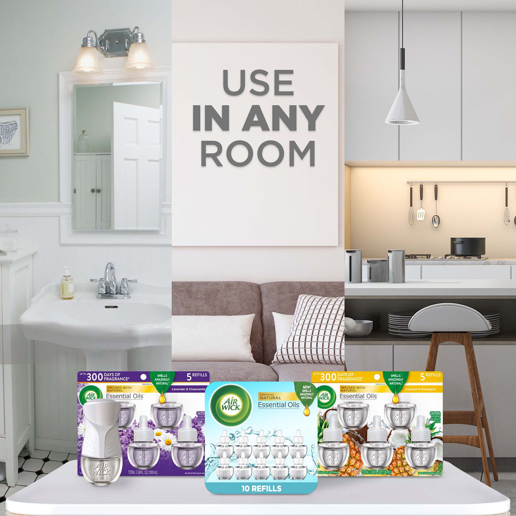 Plug in, connect to Nature: Our fragrances smell amazingly natural that you will want every plug in the house to have an Air Wick warmer. Enhance your home’s scent with Air Wick Scented Oil Refills infused with 100% natural essential oils. The formula was reformulated so you can experience natural-smelling fragrances day after day. The formula has natural based ingredients and it's free from artificial dyes and phthalates. Air Wick Scented Oil Refills release continuous fragrance for up to 60 days (based on low setting) delivering a long-lasting authentic fragrance experience for your home. And our latest Air Wick scented oil warmer releases fragrance upwards and outwards, reaching every corner of the room for a consistent fragrance experience. The Air Wick Scented Oil warmer also allows you to choose between five fragrance settings for just the right amount of fragrance. It continuously diffuses and carefully blends fragrance throughout your living room, bathroom, bedroom, hallways, kitchens, and office, or any space.