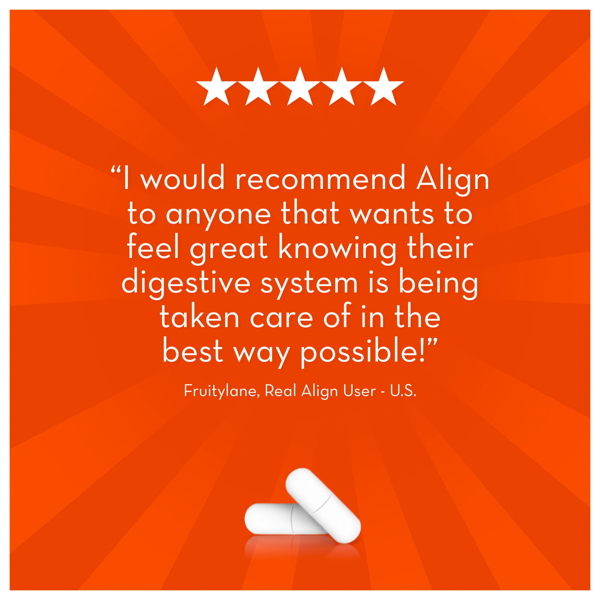 Naturally helps build and support a healthy digestive system*: 4 out of 5 people felt more confident with their digestive health after using Align Probiotic <. One capsule a day naturally helps to support your digestive balance.*