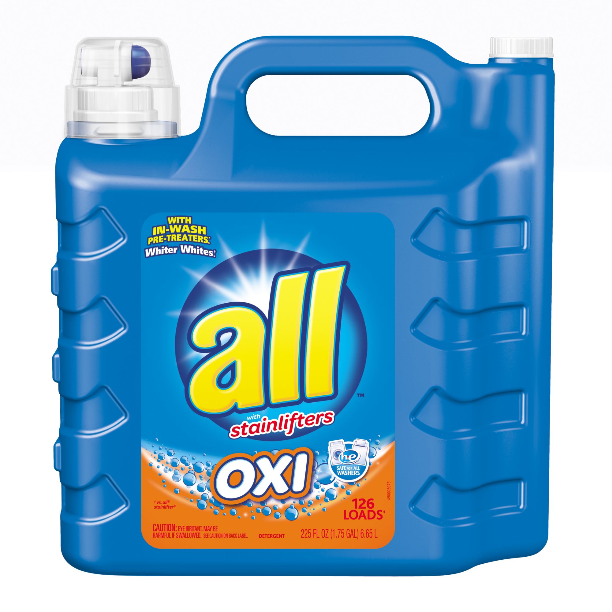 Full of concentrated cleaning power, all Oxi Liquid Laundry now contains in-wash pre-treaters for whiter whites (verses all Stainlifter). Containing no phosphates, it works in all temperatures, including cold water. It is safe for all washing machines and for use with septic systems.