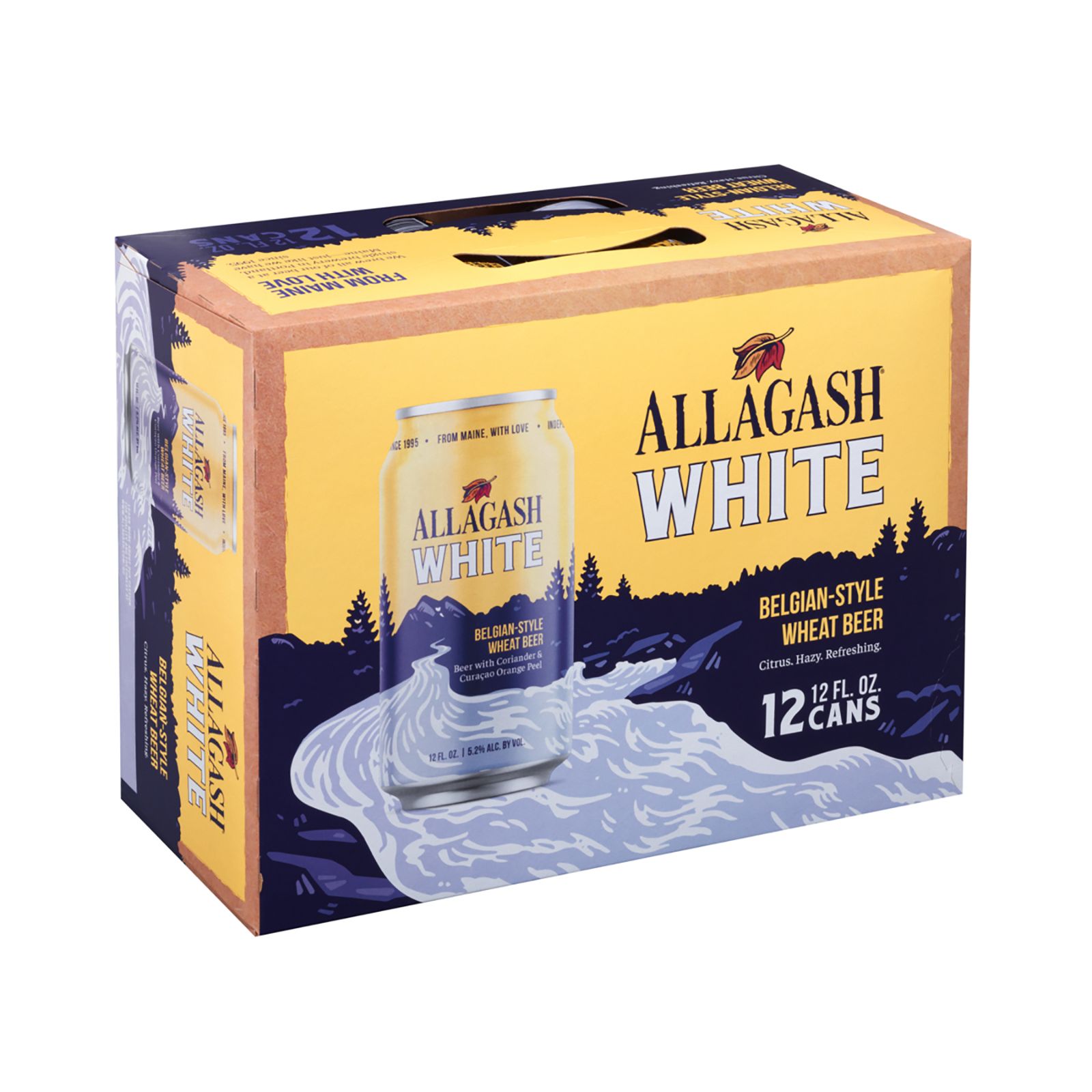 Beer with coriander and curacao orange peel. From Maine, with love. Independent brewers since 1995. Allagash's take on this Belgian style is brewed with coriander with Curacao orange peel. Citrus-forward, hazy, and refreshing. Certified Brewers Association: Independent craft. Please recycle. 5.2% alc. by vol. 10.4.
