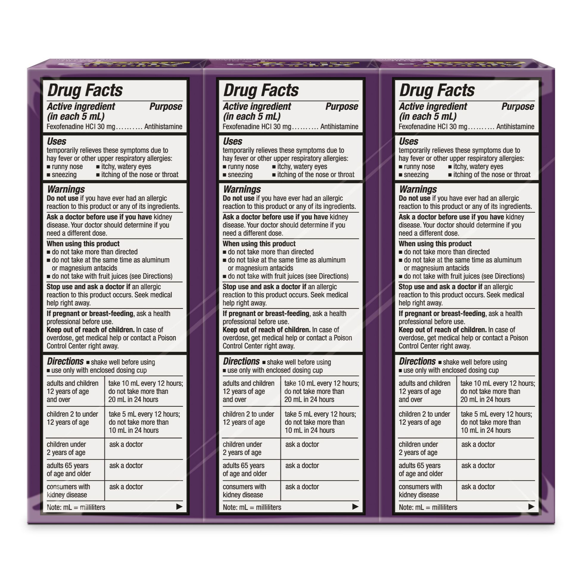 Allegra Children's Dye-Free 12-Hour Allergy Relief Liquid, 3 ct./4 fl. oz.