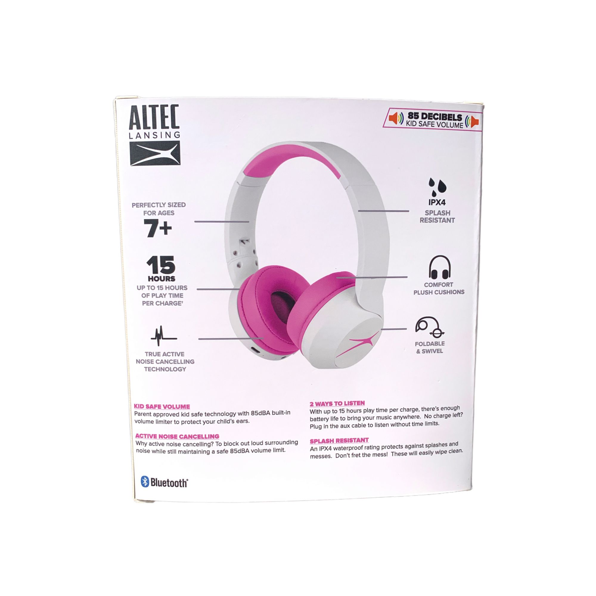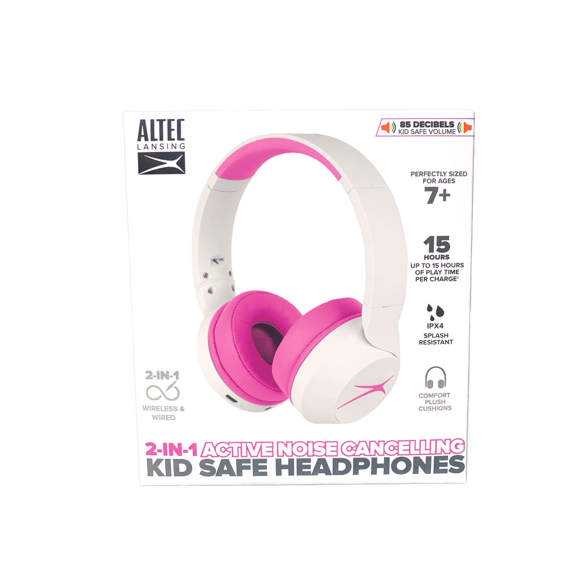 Altec Lansing Kids 2-in1 Active Noise Cancelling Wireless Headphones - Pink