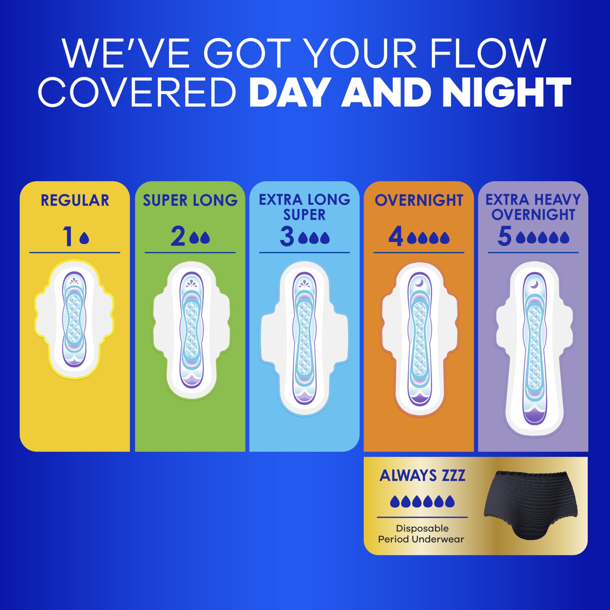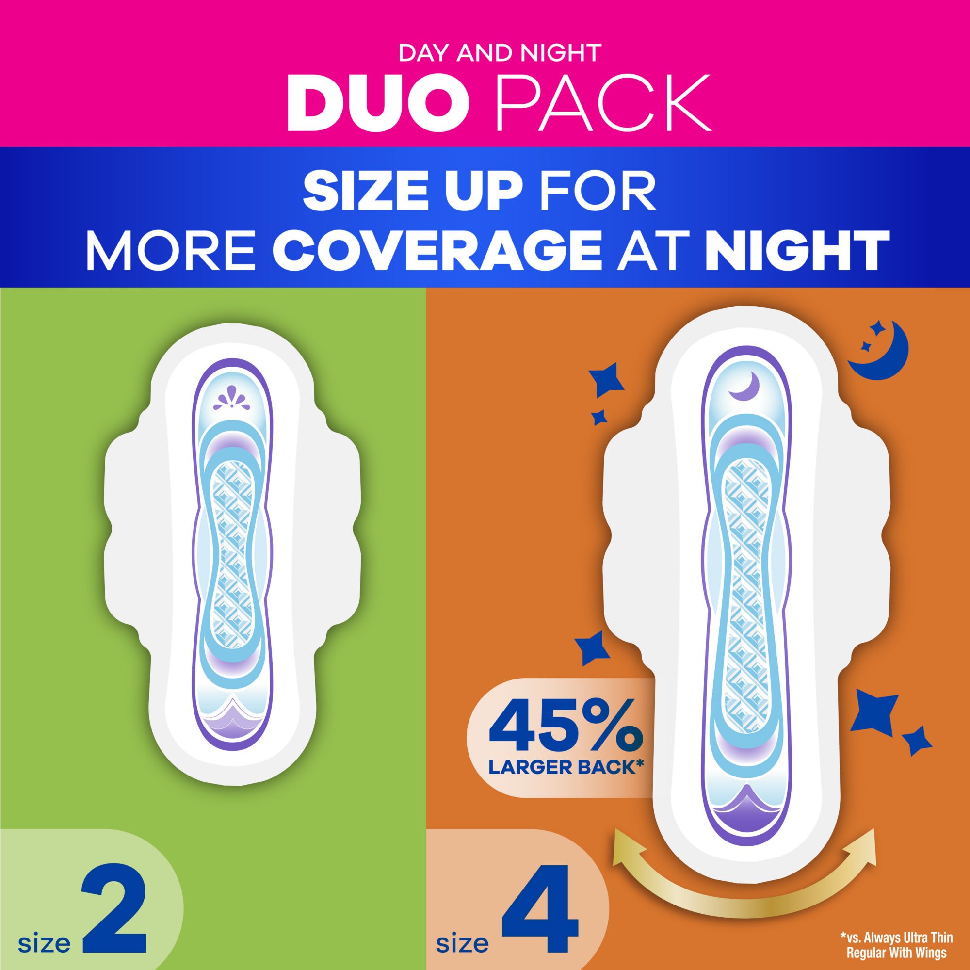Always Ultra Thin Pads Duo Pack, Feminine Pads, Size 2 Long Super and 4 Overnight Absorbency, 74 ct.