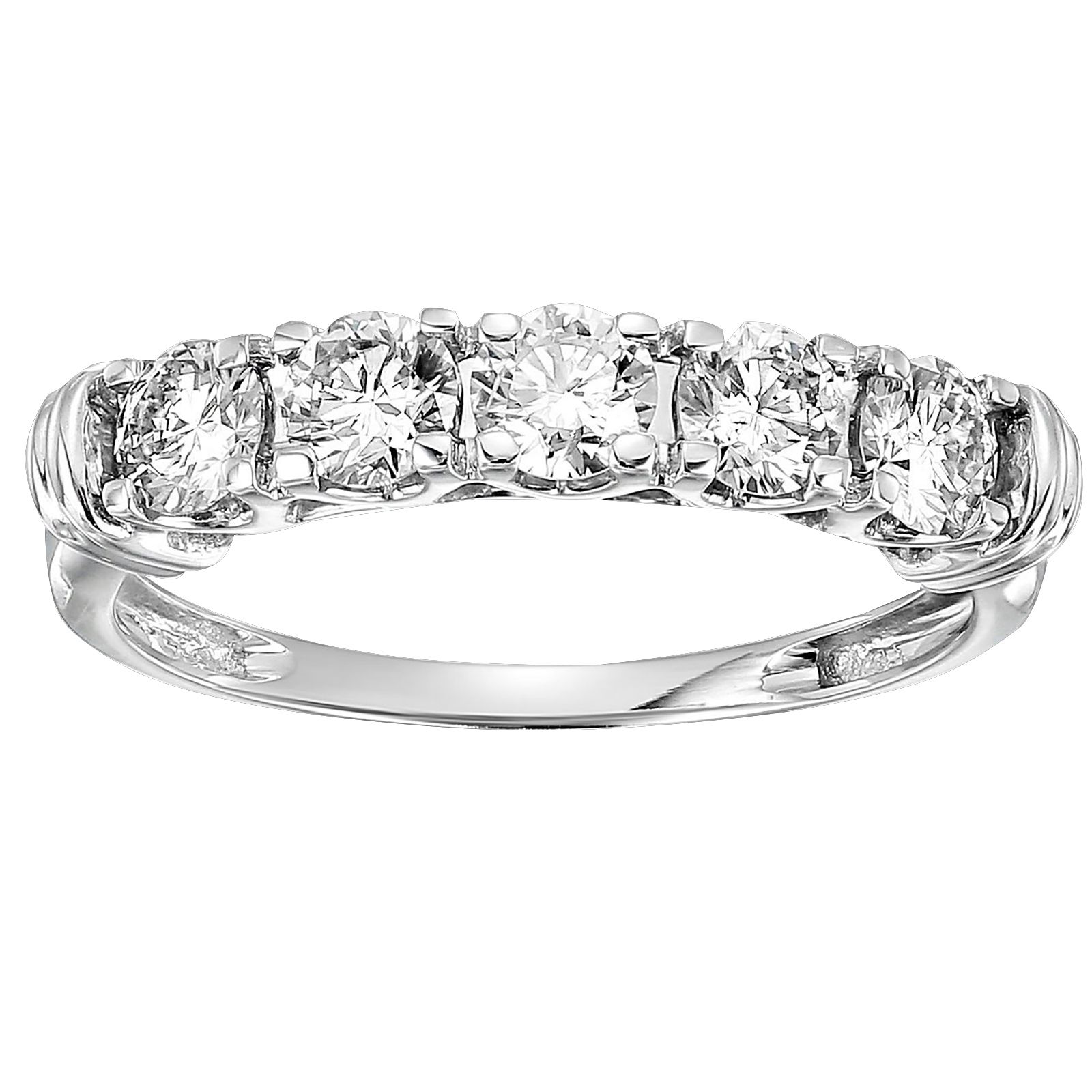 Prong set 5 stone bridal ring Available in multiple sizes Total diamond carat weight: 1 ct. t.w 14K white gold Gift box is included Includes engagement ring