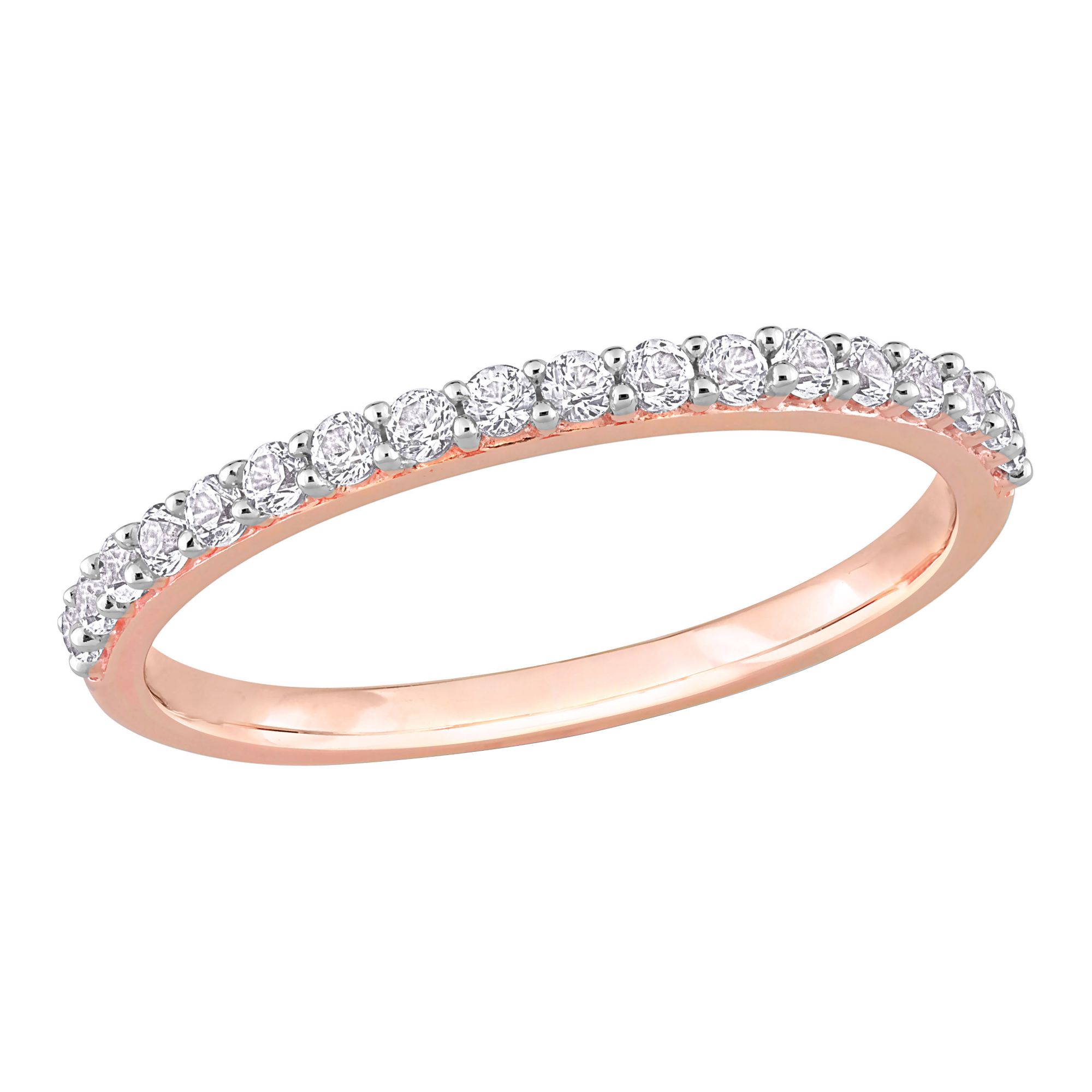 Created White Sapphire Semi-Eternity Wedding Band Ring in 10k Rose Gold