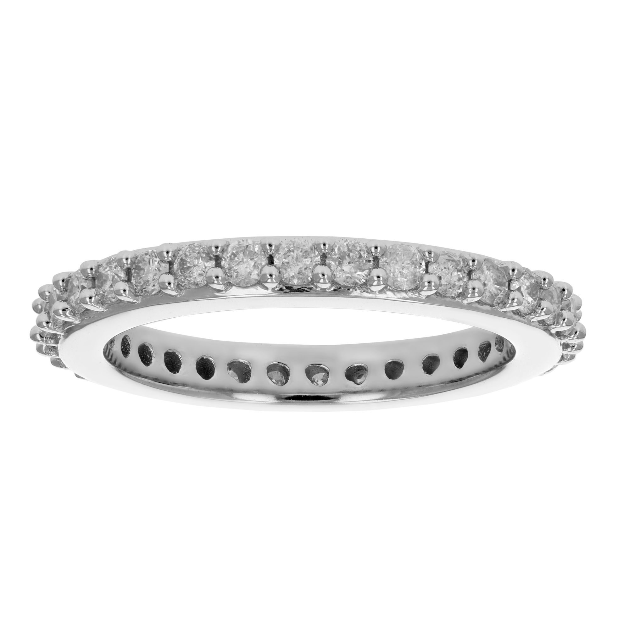 Style: Eternity Band Carat/ct. t.w.: 1.00 ct. t.w. Cut: Round Color: H-I Clarity: I1-I2 Count: 28 Gemstone: Diamond Lab Created: No Metal: 14k White Gold Finish: Polished Warranty: 30 days