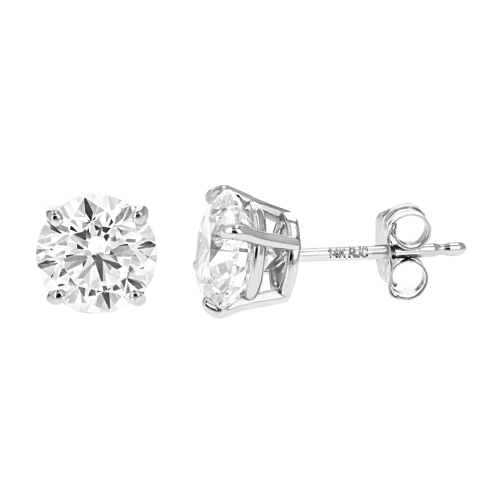 Amairah 2 ct. t.w. Lab Grown Diamond Stud Earrings 14k White Gold Round Shape Prong Set with Push Backs (Butterfly Backs)