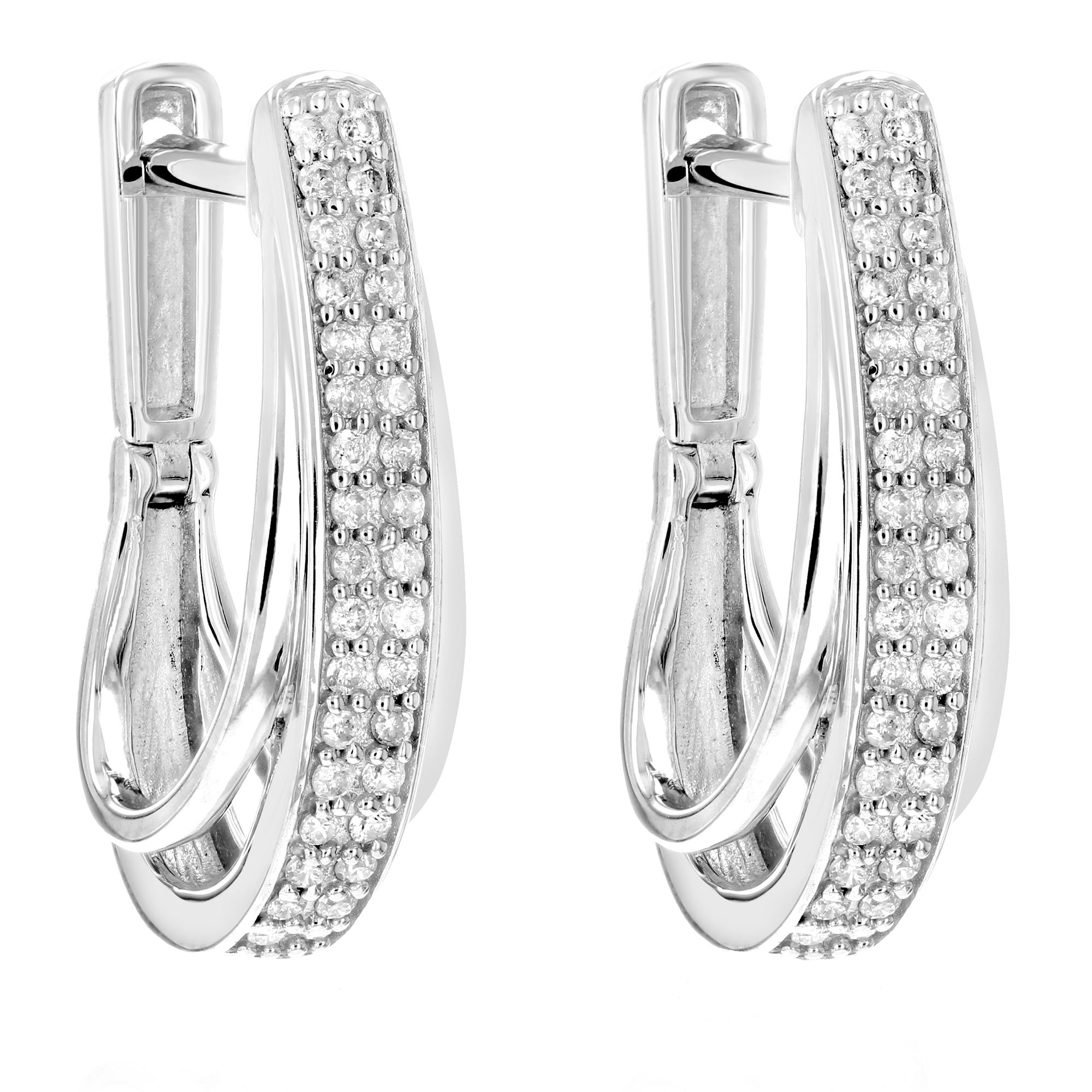 Amairah .25 ct. t. w. Diamond Hoop Earrings .925 Sterling Silver with Rhodium Prong Set Dangle .75"