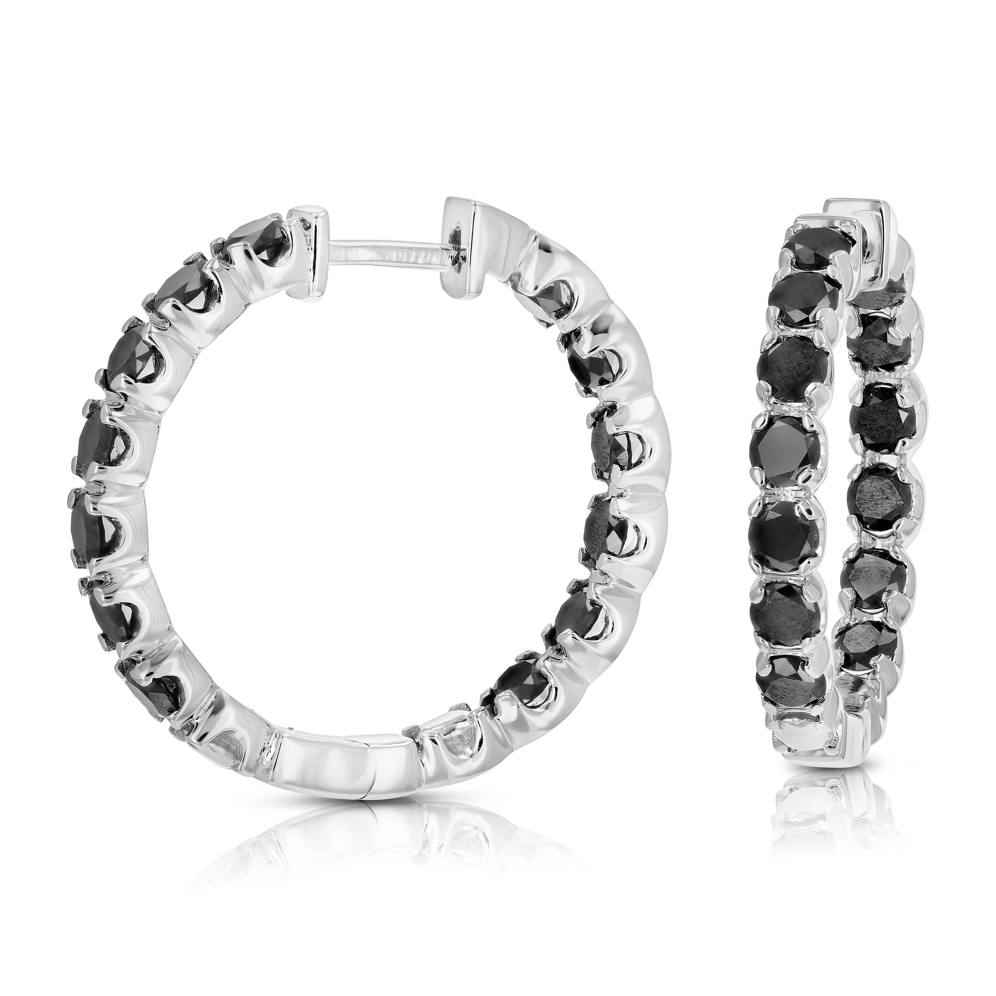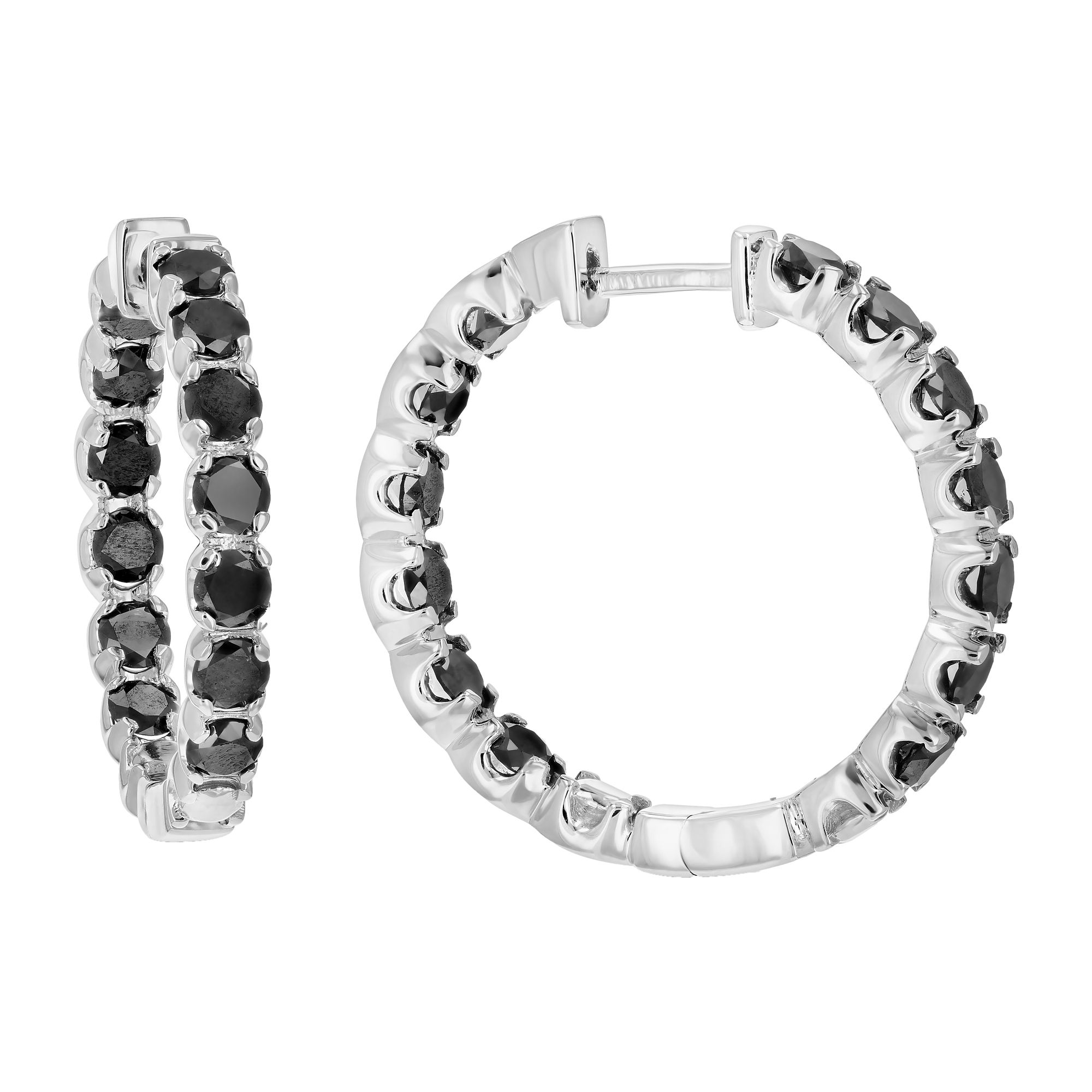 Amairah 4 ct. t. w. Black Diamond Inside Out Hoop Earrings .925 Sterling Silver with Rhodium Prong Set 1"