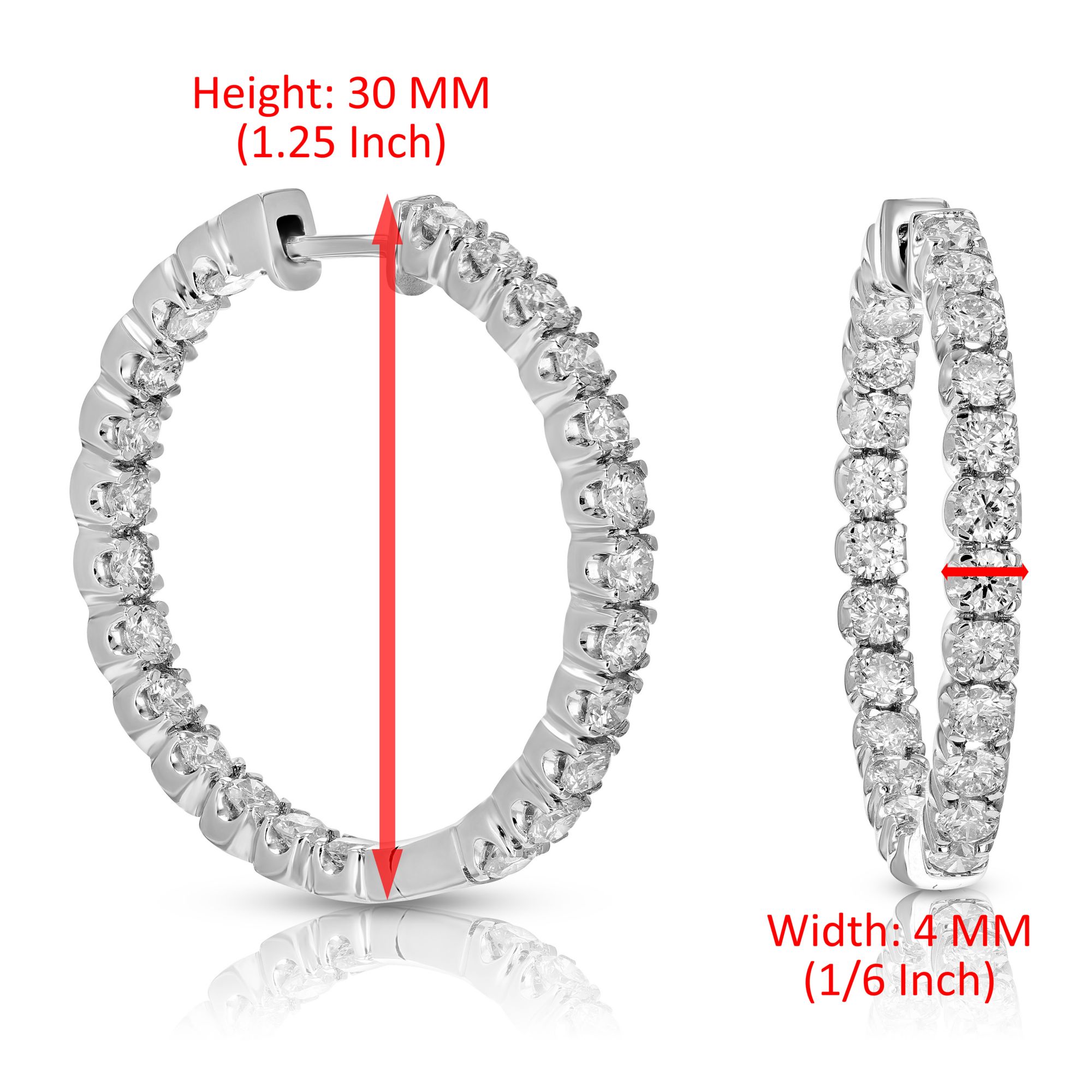 Amairah 4 ct. t.w. Lab Grown Diamond Hoop Earrings 14k White Gold Classic Design 1.25" Height Round Prong Set