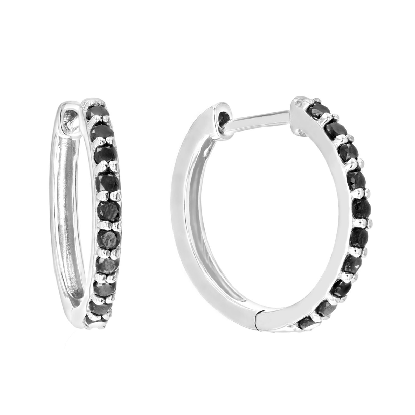 Amairah .50 ct. t. w. Black Diamond Hoop Earrings .925 Sterling Silver with Rhodium Prong Set .75"