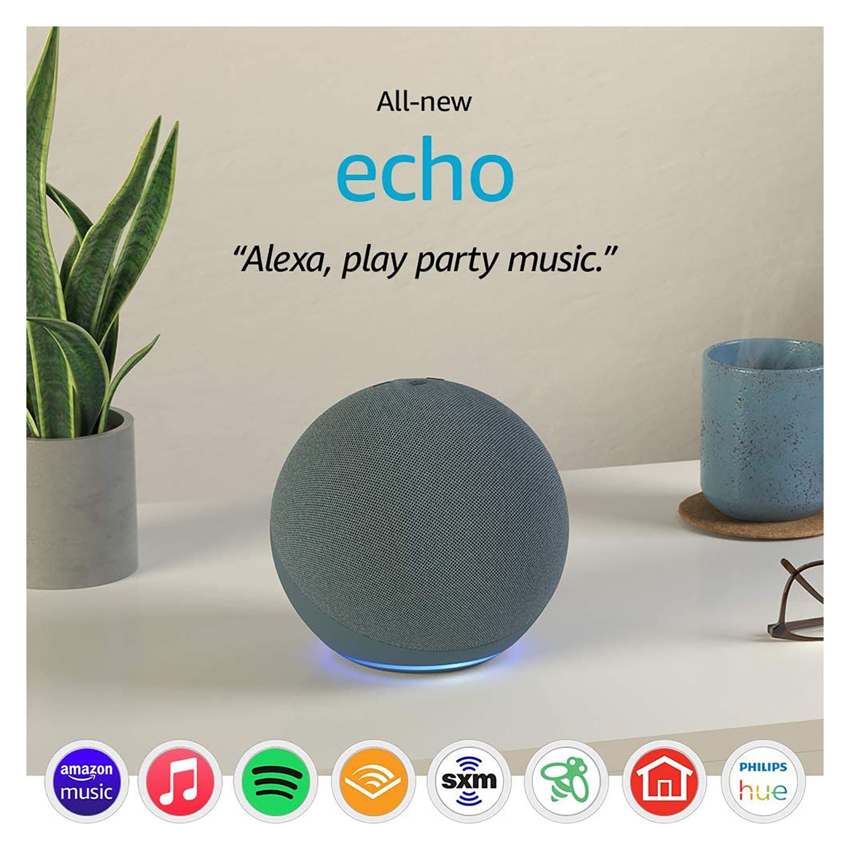 Includes Echo (4th gen), power adapter and quick start guide