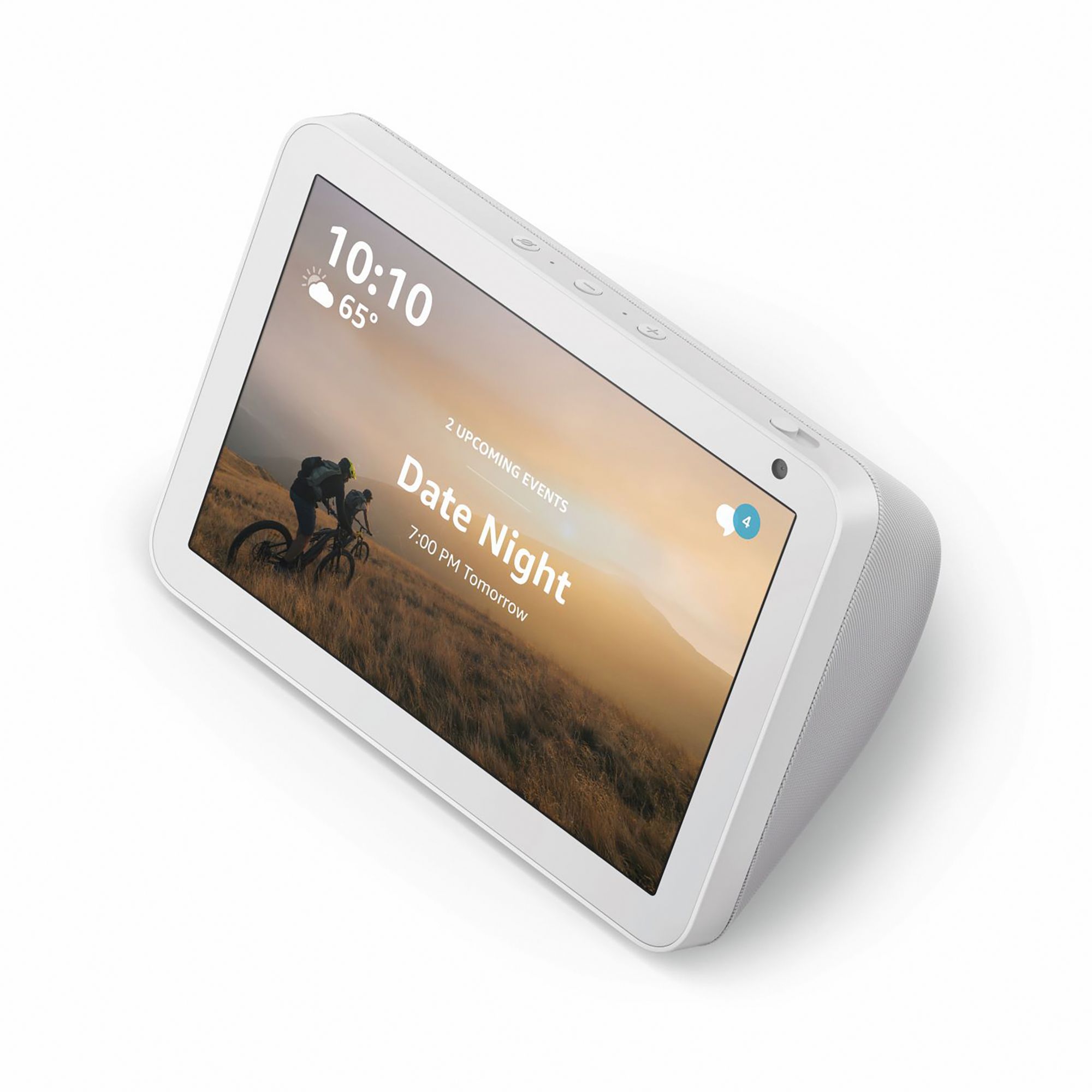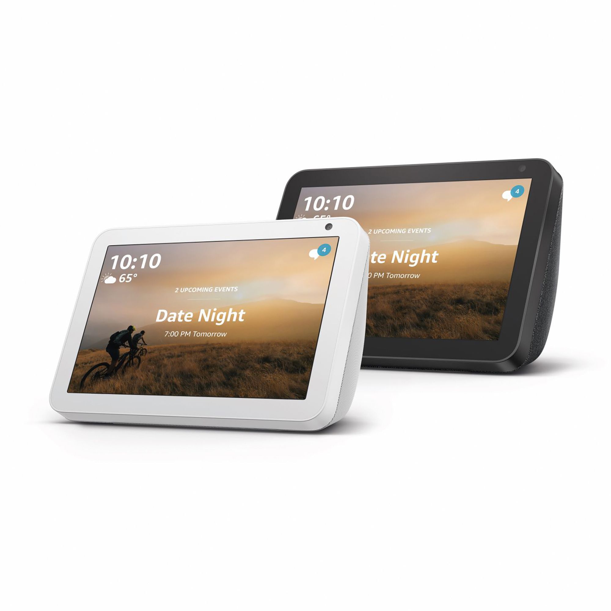 Alexa can show you even more: The 8” HD touchscreen, adaptive color, and stereo speakers bring entertainment to life