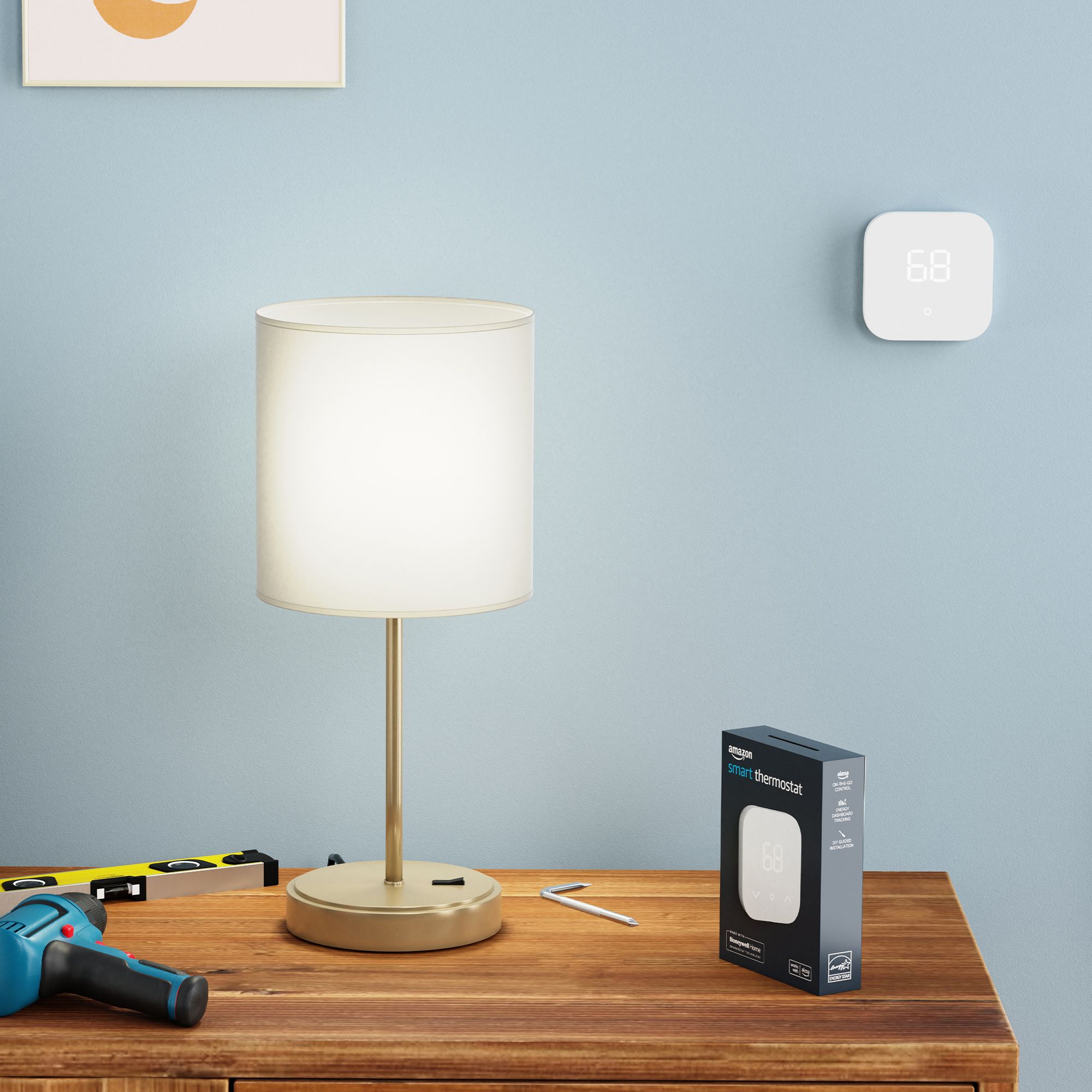 Smart upgrade- Amazon smart thermostat Helps reduce energy usage Auto control Alexa can do the programming for you On-the-go comfort- let Alexa set the temperature Set it yourself from anywhere with the Alexa app Alexa app will guide you through the installation Reliable. Made with Honeywell Home Technology Save money- Energy-star certified Track and manage energy usage Check if your home requires a C-wire with the above compatibility checker tool Includes Amazon smart thermostat, installation tool, wall plate, cosmetic plate, and quick start guide.