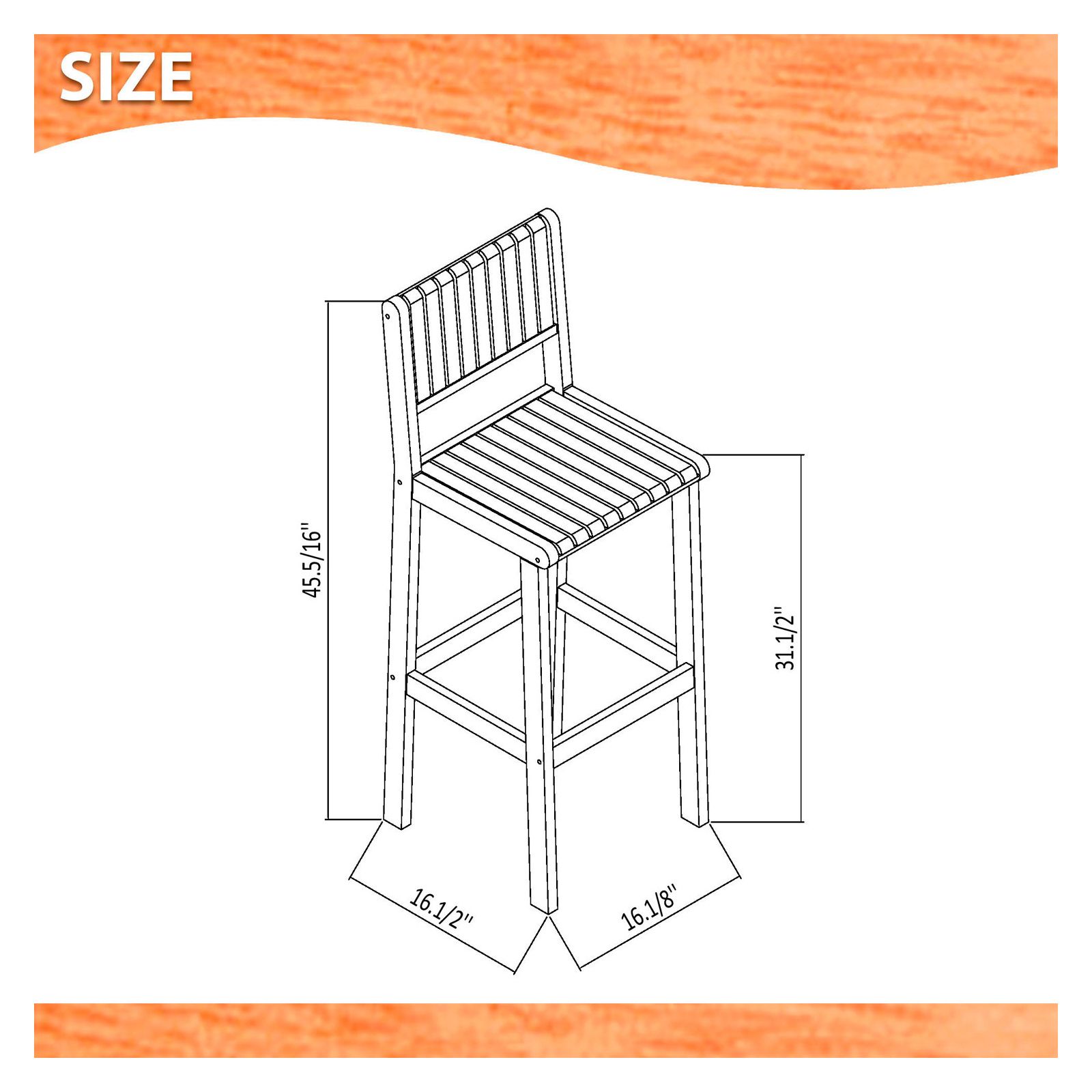 - Bar table dimensions: 31"L x 43"H; stool dimensions: 15.5"L x 16.5"W x 45"H; stool seat dimensions: 13.5"L x 16"W x 31"H