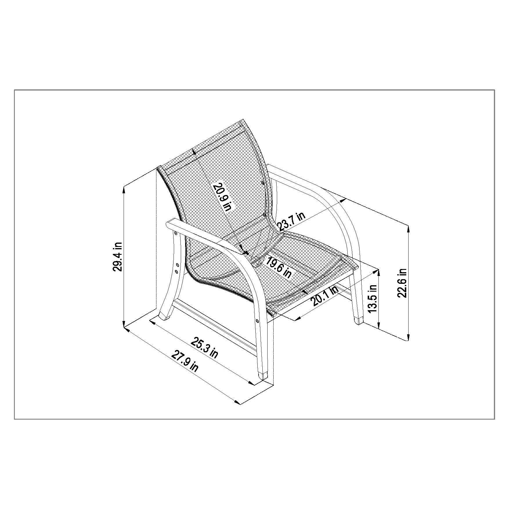 - Sofa dimensions: 44.5"L x 27"W x 29.5"H; armchair dimensions: 24"L x 28"W x 29.5"H; coffee table dimensions: 38"L x 19.5"W x 13"H