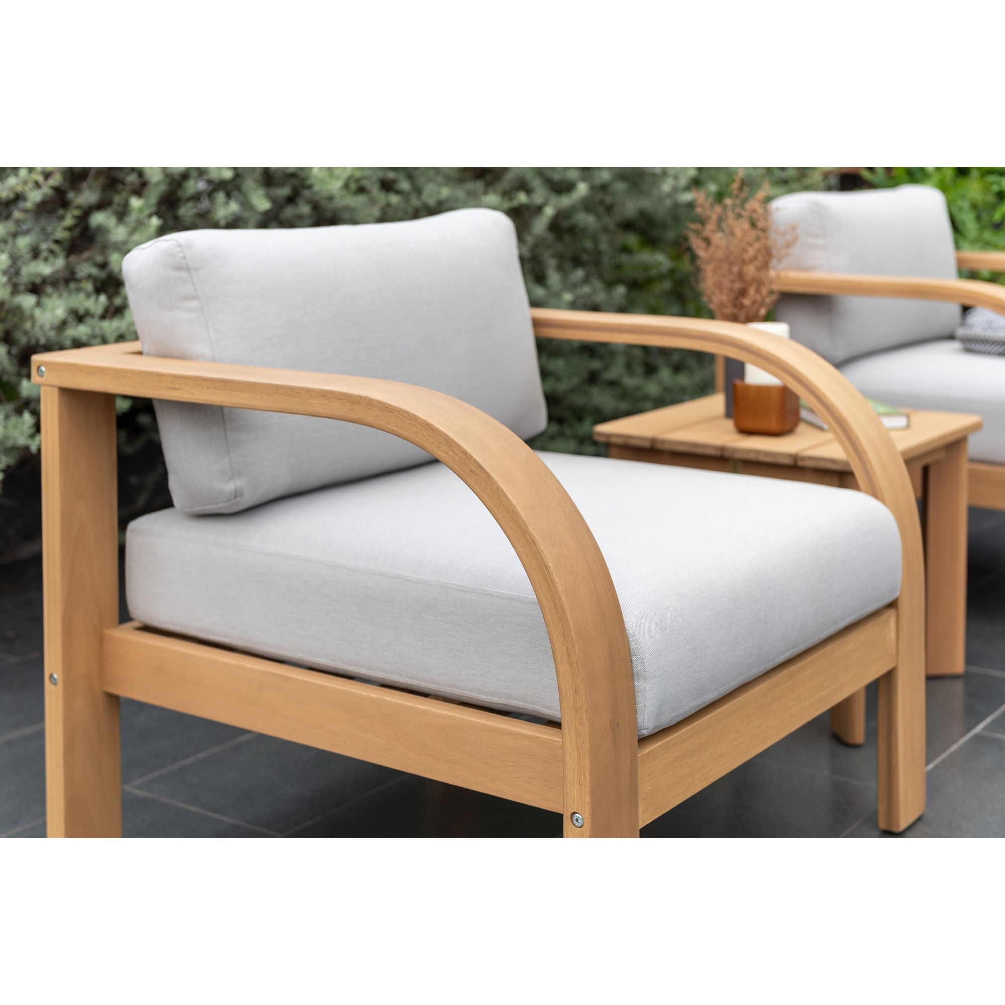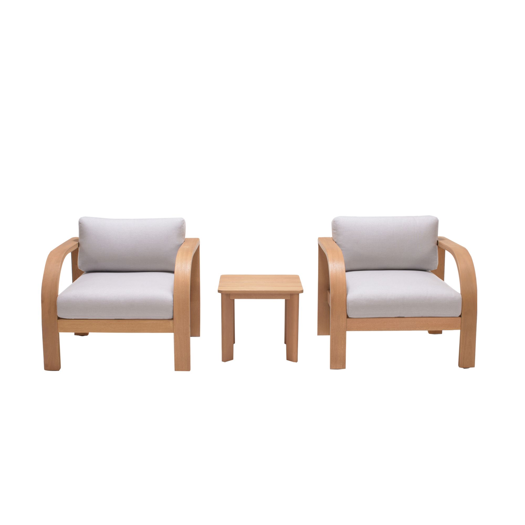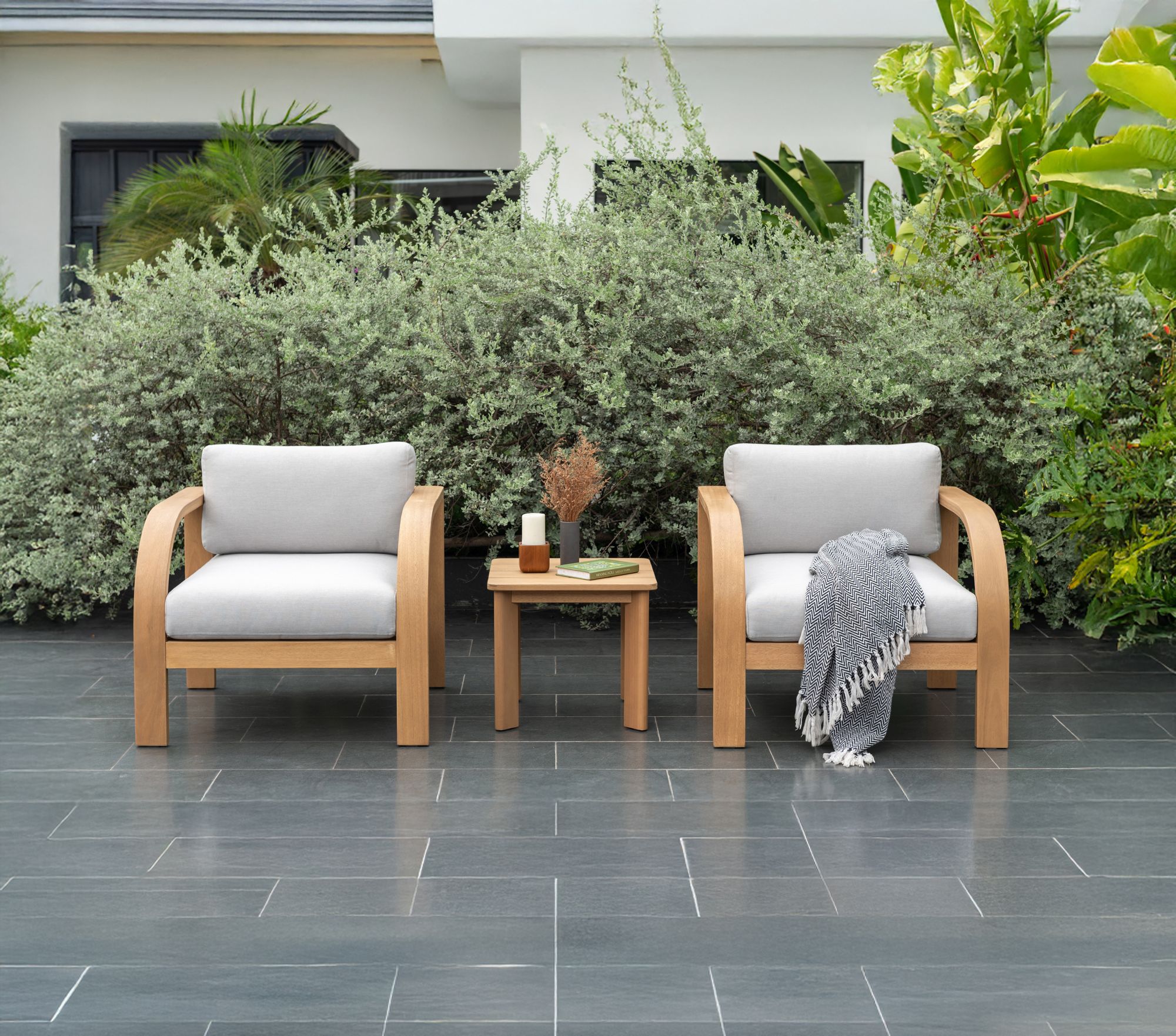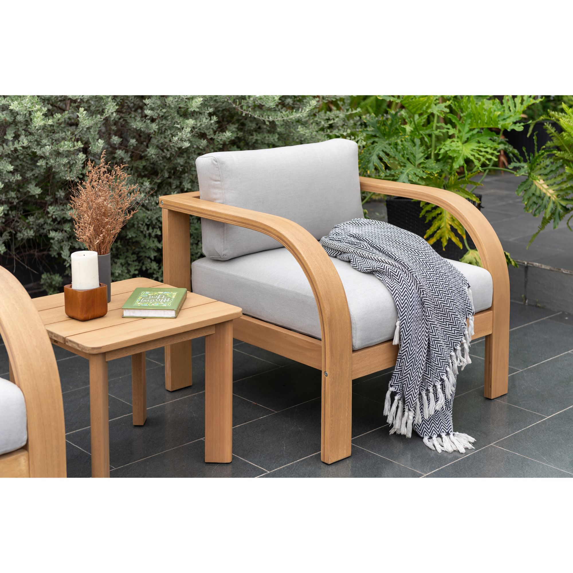 Enhance your outdoor relaxation with the Amazonia Brooke 3-Pc. Conversation Set. This stylish set includes two comfortable chairs and a sleek side table, all crafted from wood to ensure both durability and a chic aesthetic . Perfect for intimate gatherings or enjoying a peaceful moment outdoors, the Brooke collection brings a touch of sophistication to any backyard.