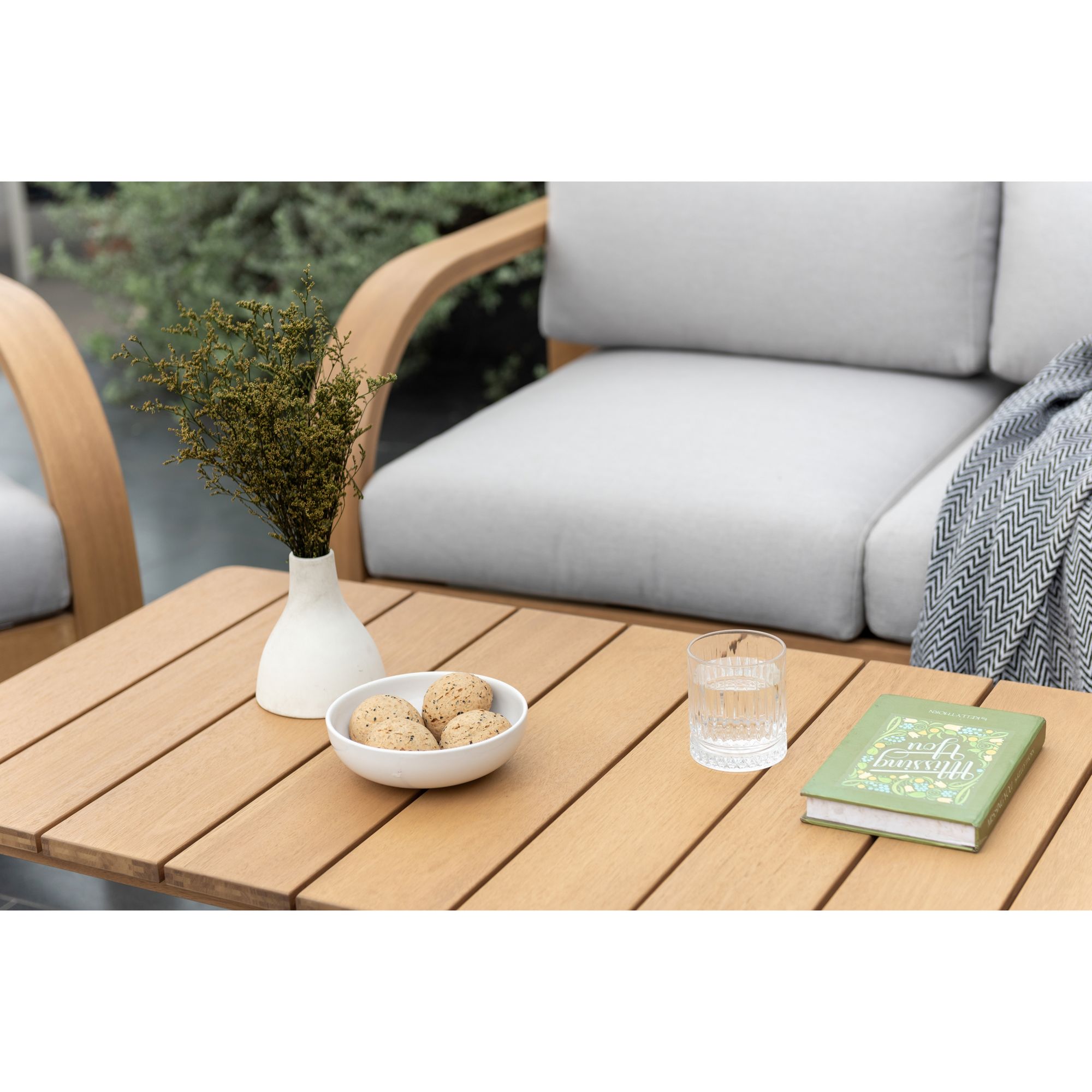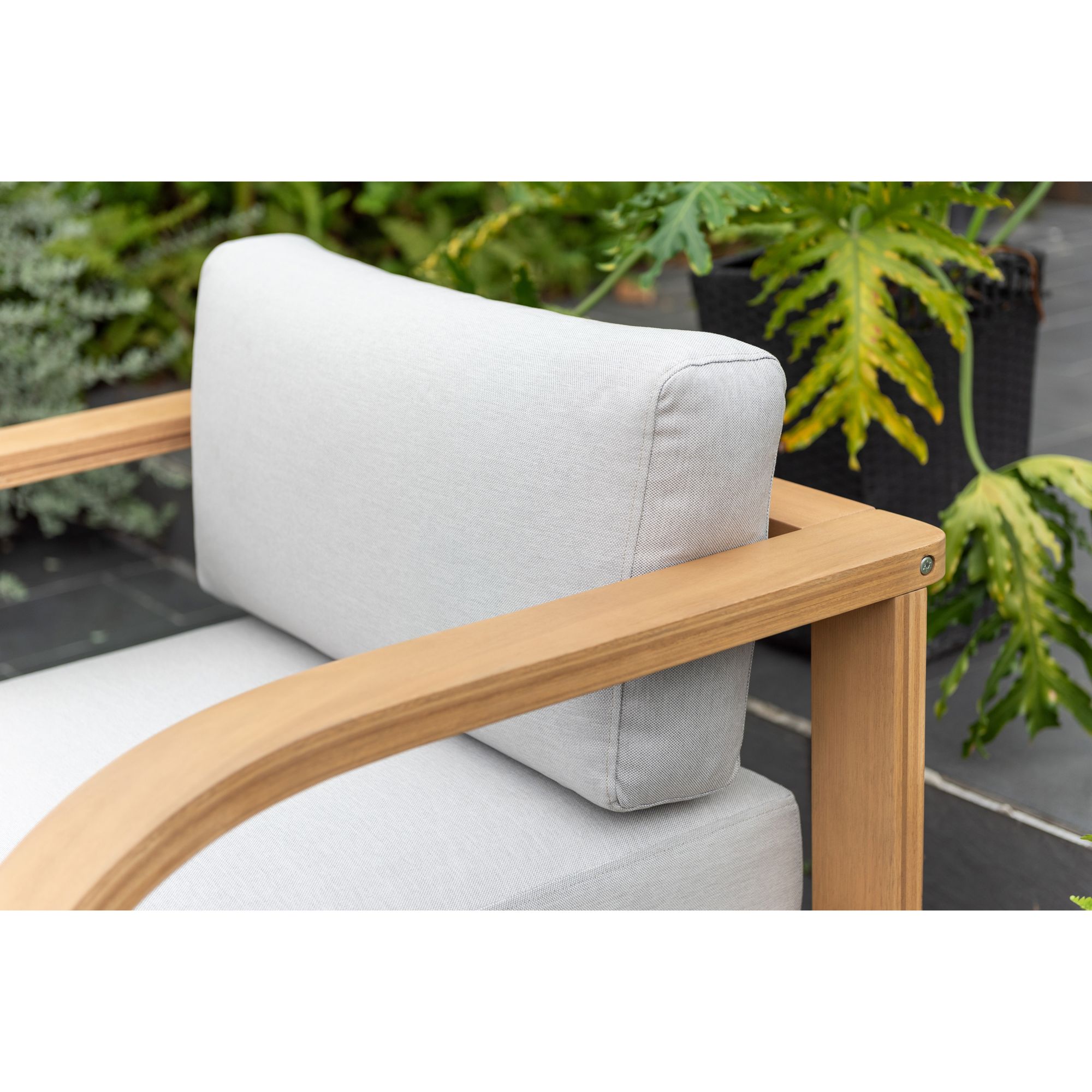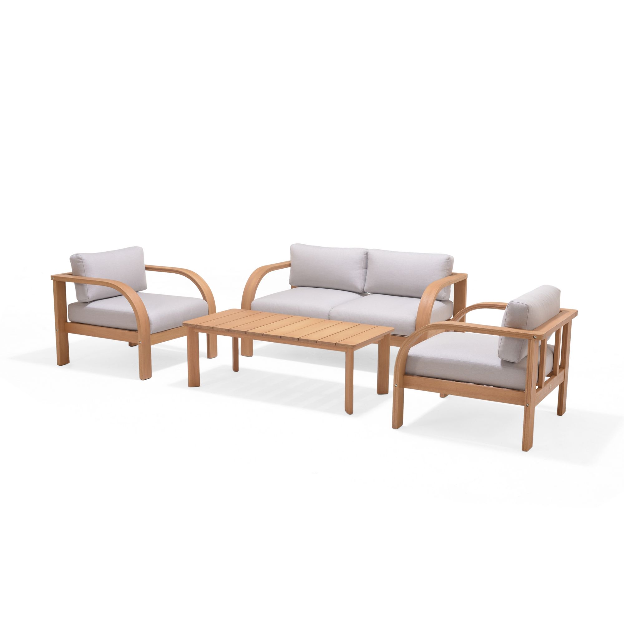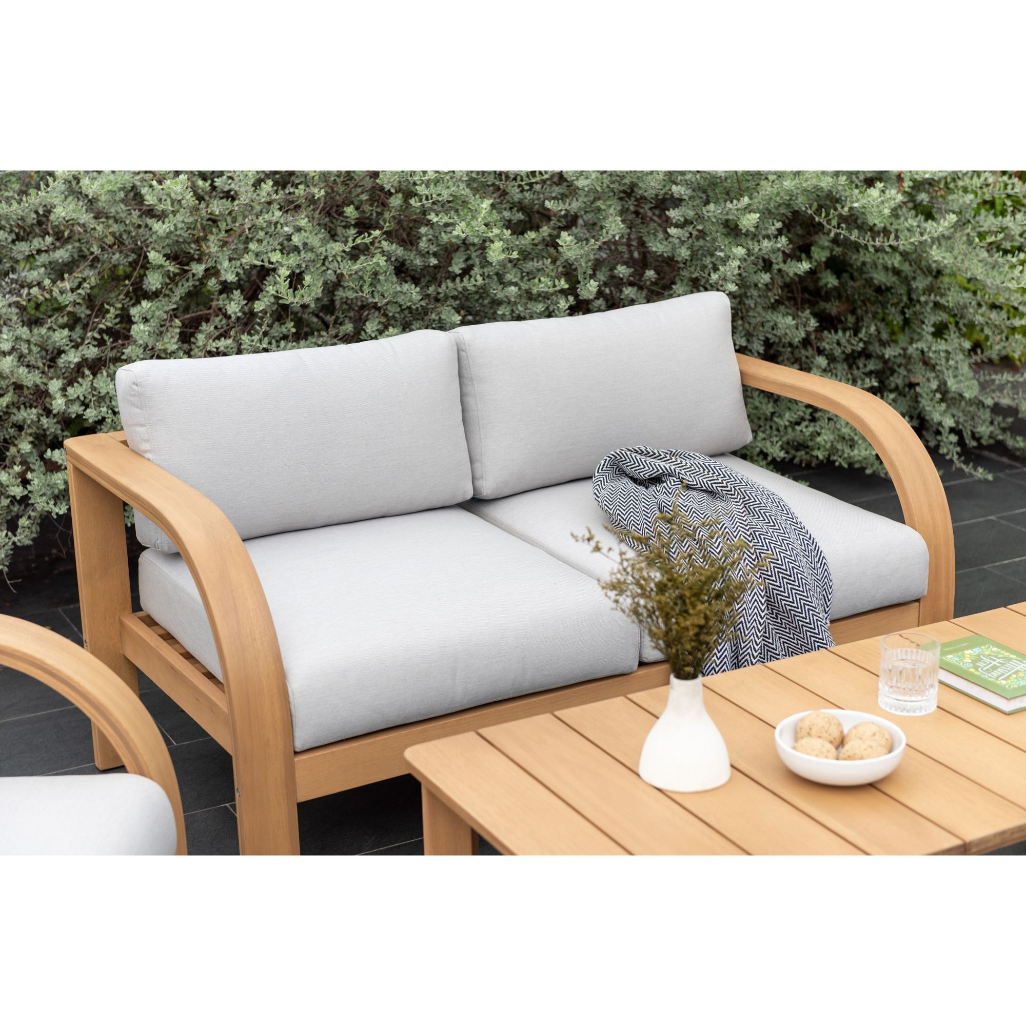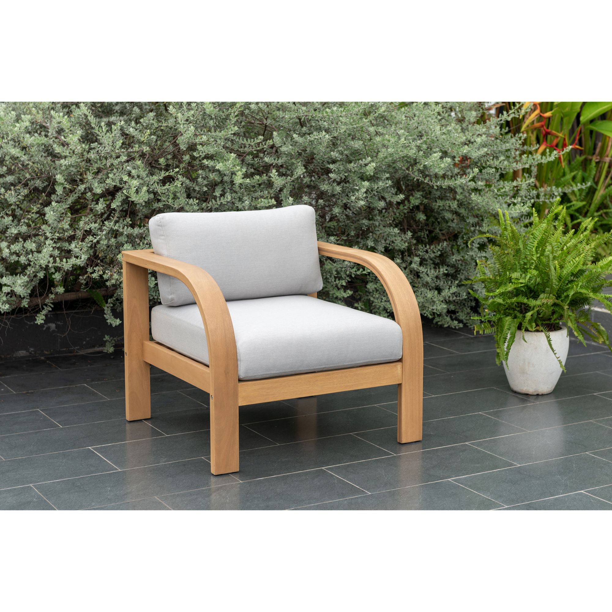 Redefine your outdoor comfort with the Amazonia Brooke 4-Pc. Deep Seating Set. This set includes a cozy loveseat, two stylish chairs, and a sleek coffee table, all crafted from wood for durability and a contemporary look. Perfect for relaxing with family or entertaining guests, the Brooke collection brings a touch of sophistication to any backyard.