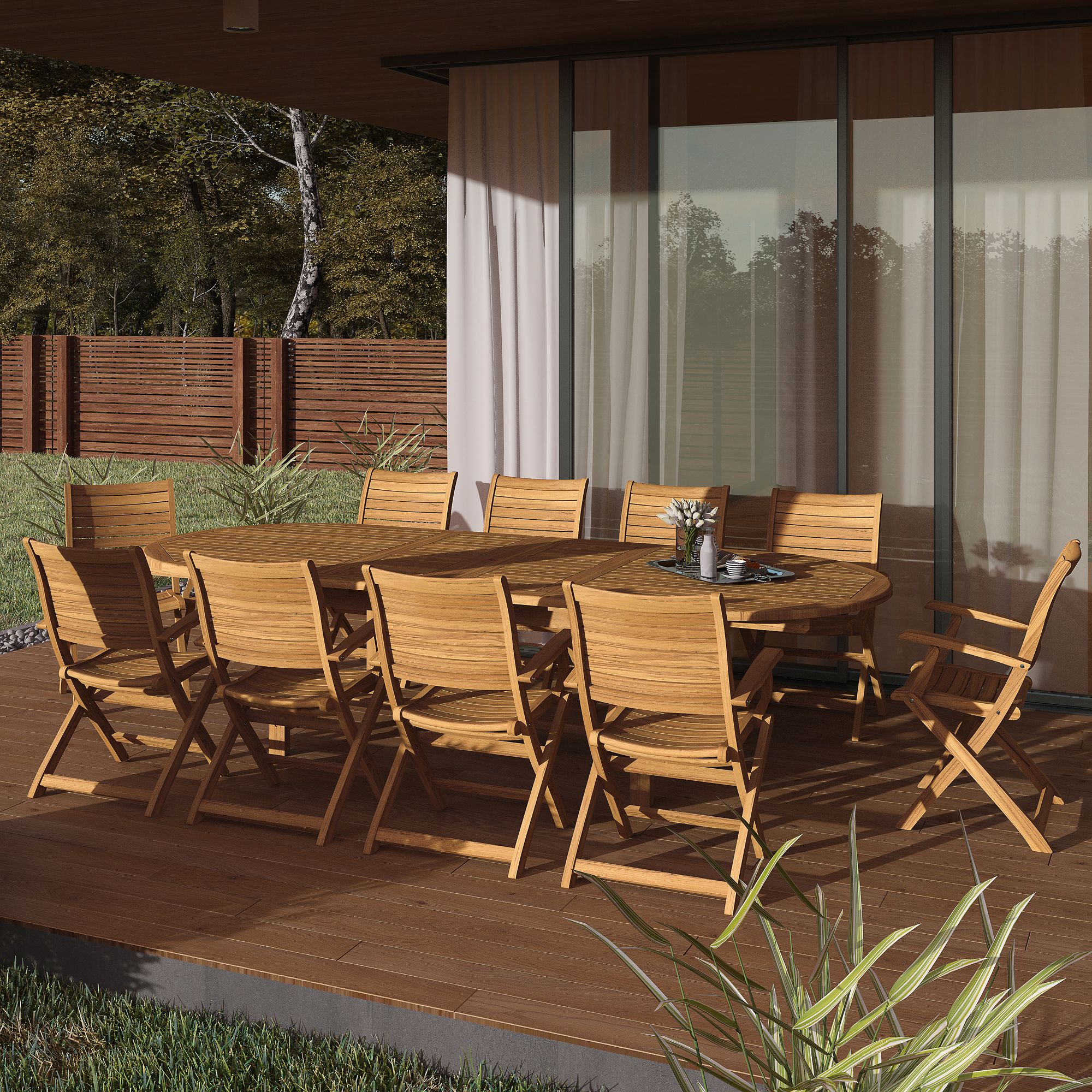 | Includes | 1 Dining Table, 10 Folding Dining Armchairs, Maintenance Kit |