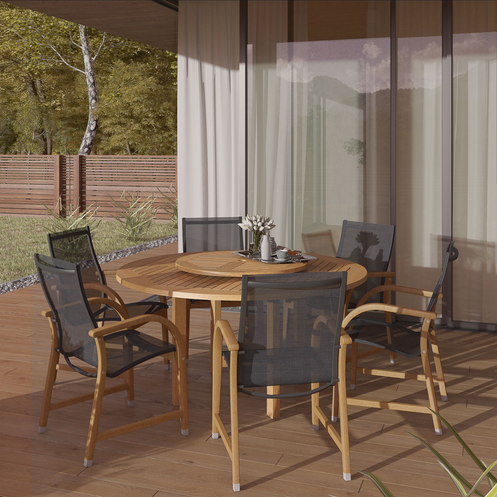 Amazonia Monique 7-Pc. Teak Finish Lazy Susan Patio Dining Set