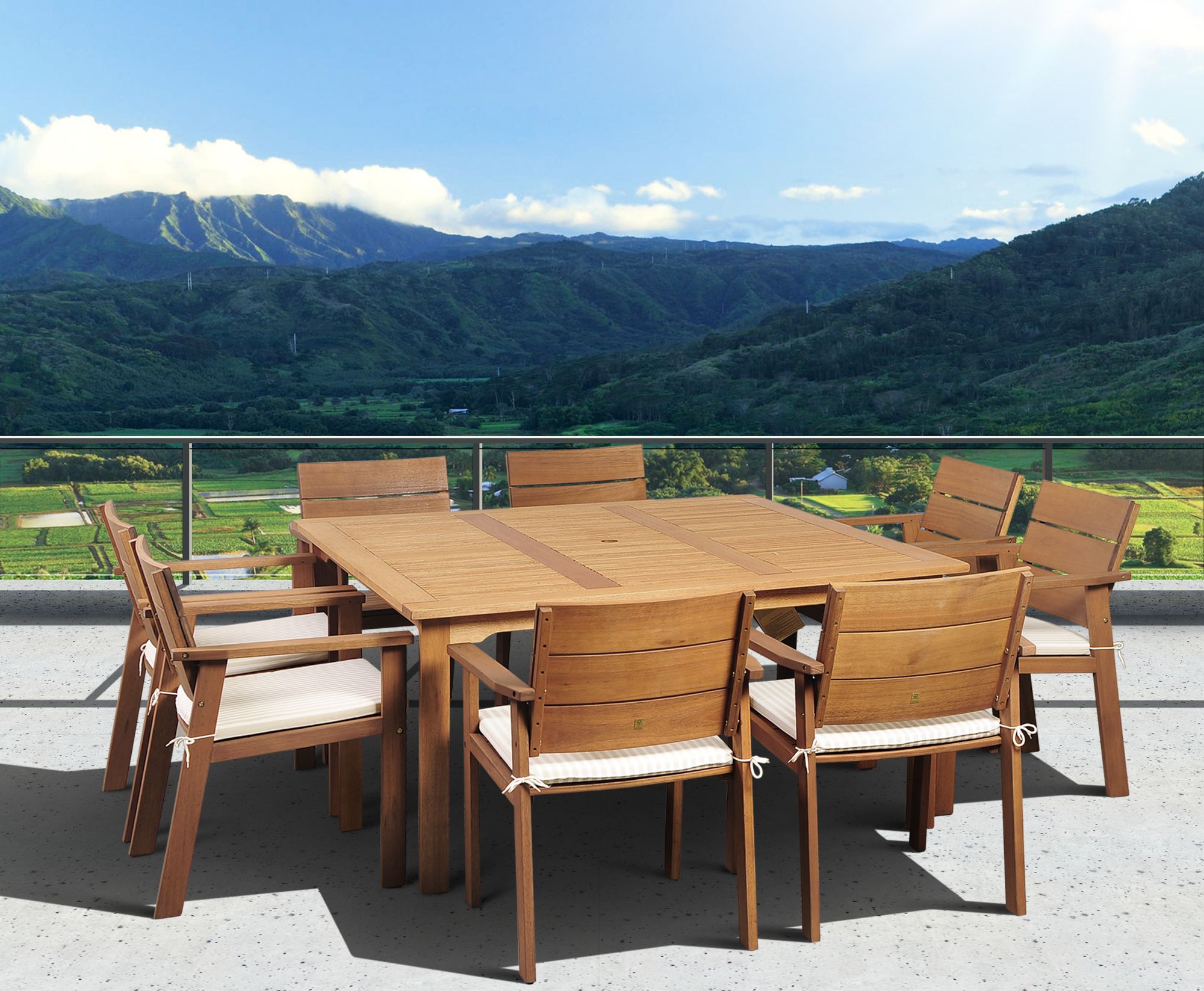 Amazonia Santiago 9-Pc. Eucalyptus Square Dining Set - Brown/Off-White/Beige