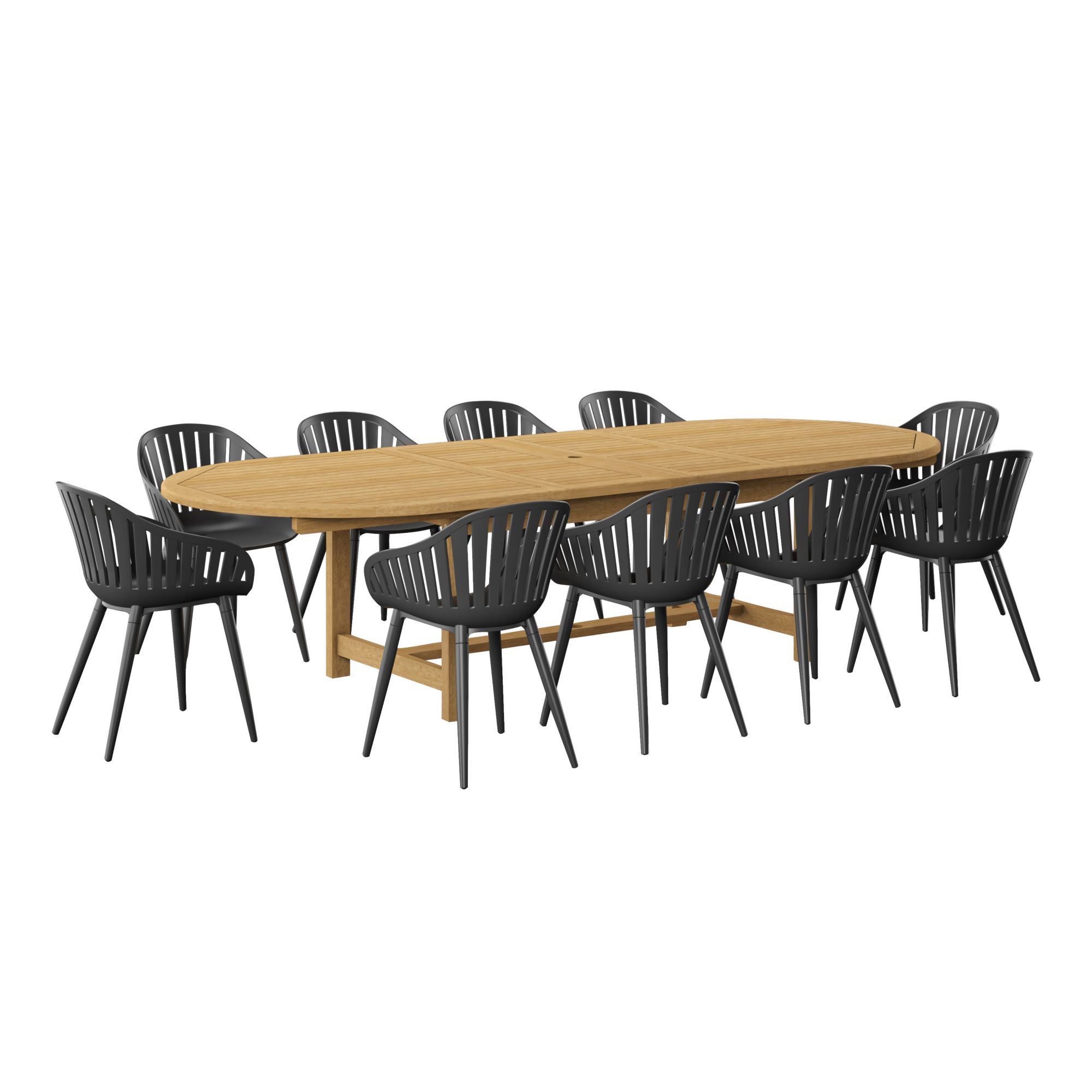 Amazonia Teak 11pc Outdoor Patio Peter Dining Set - Black Chairs