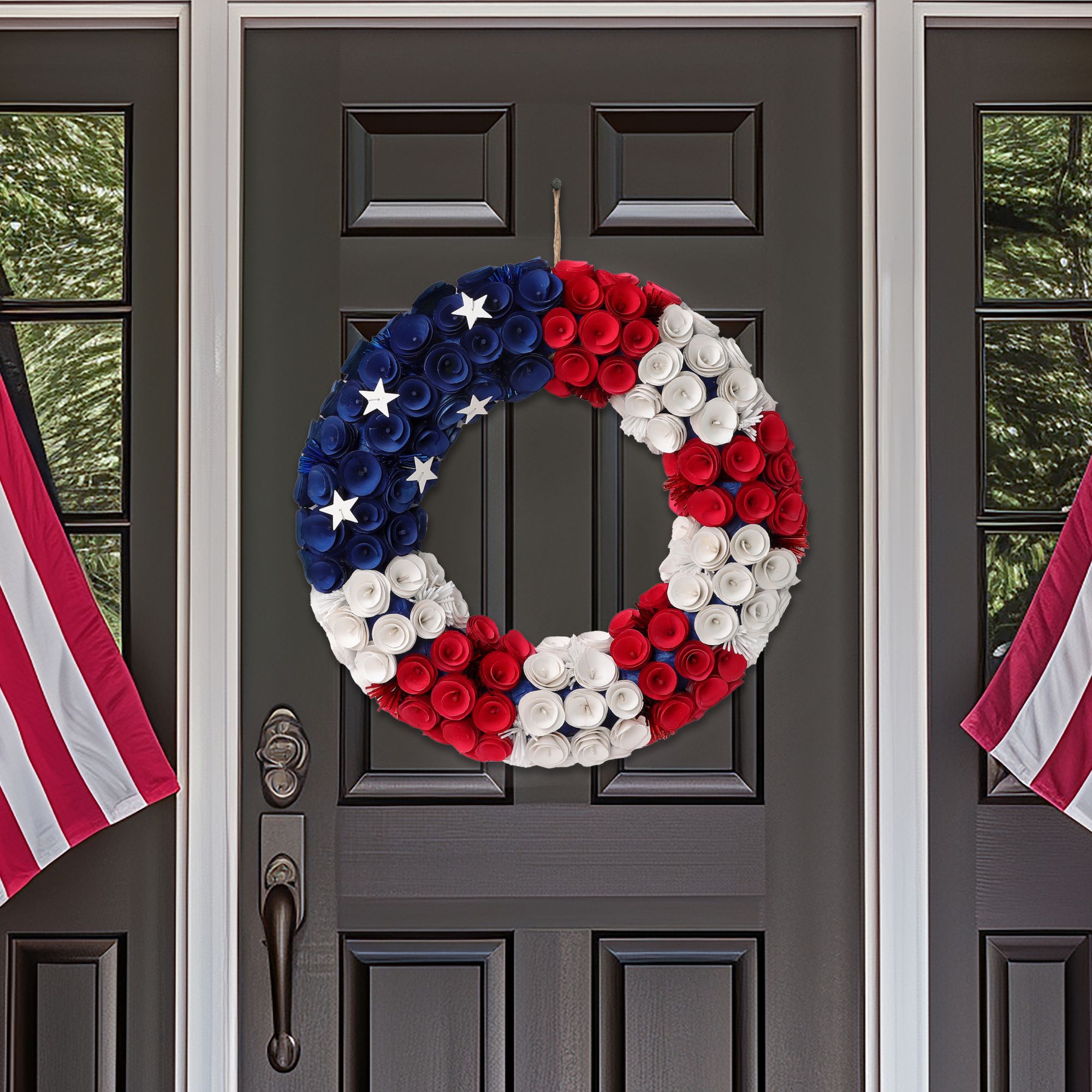 Includes 20" Americana woodchip wreath