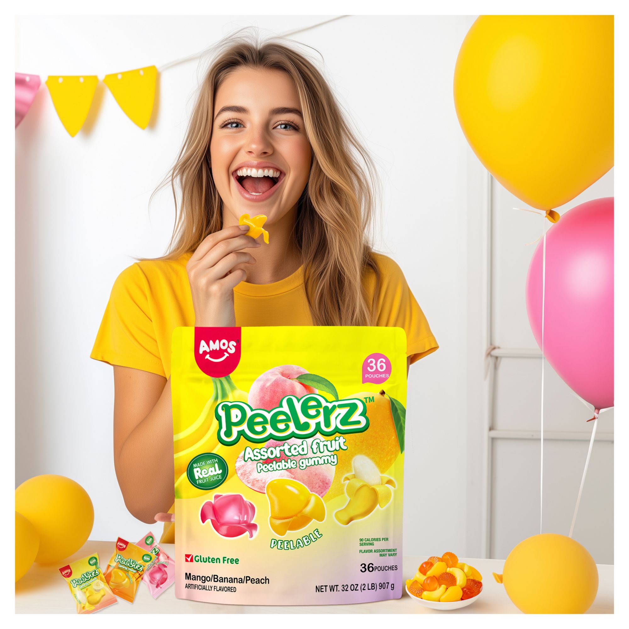 Includes assorted gummy treats, 32 oz.