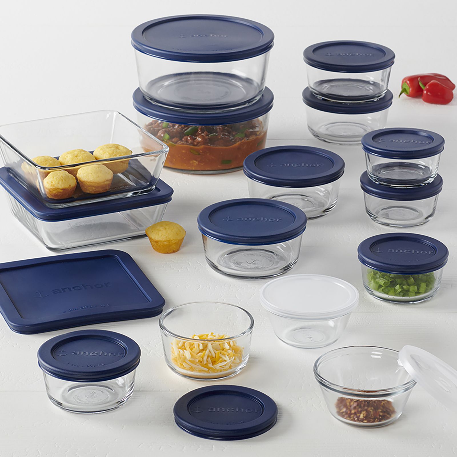 Anchor Hocking 30 Pc. Food Storage Set - Clear with Blue Lids