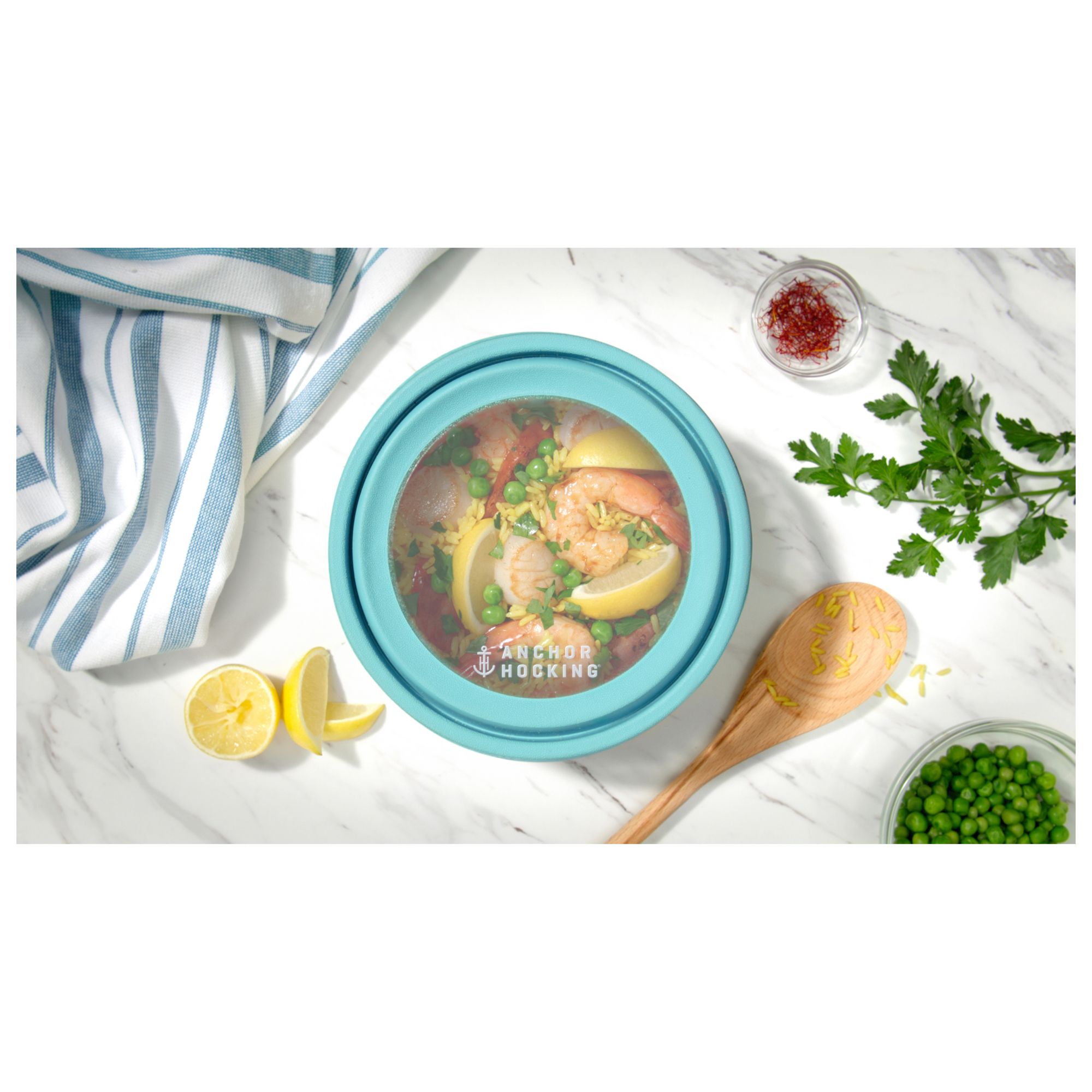 Anchor Hocking TrueSeal glass food storage containers with lids were designed to prevent spills and leaks by utilizing the BPA-free, textured lid, which seamlessly forms to the glass container, yet are easy to put on and take off. These versatile glass containers will become a kitchen staple for all your prep, baking, storage, transporting, serving and reheating needs.