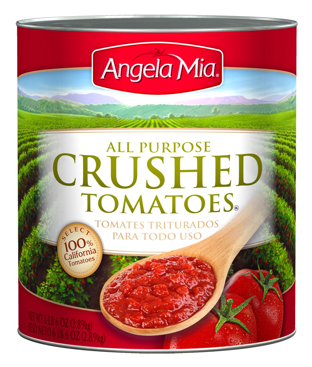 Made from 100% California tomatoes Use in your very best tomato recipes Left unpeeled to retain natural texture and flavor From field to can in matter of hours Versatile, delicious recipe base for soups and sauces Kosher Pareve Includes 102 oz. of Angela Mia Crushed Tomatoes