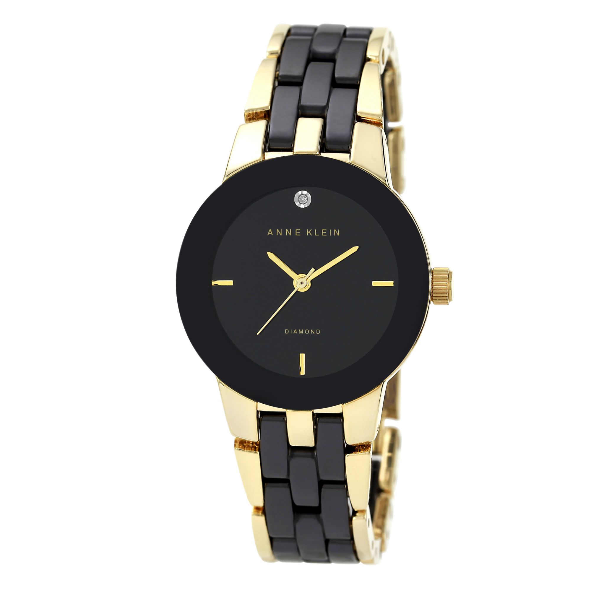 An Anne Klein classic ceramic timepiece with a genuine diamond set into the 12 o'clock position.