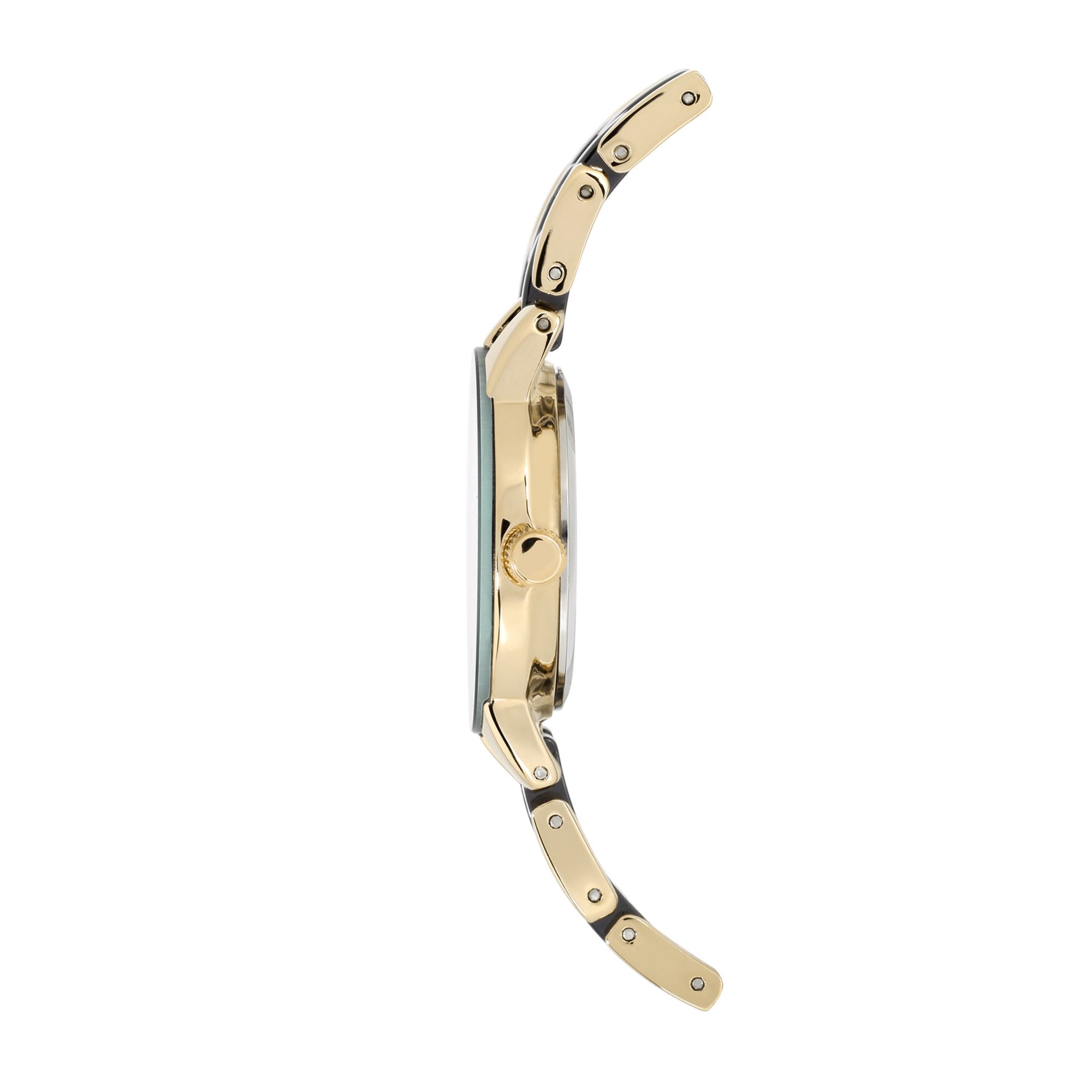 Black dial with genuine diamond at 12 o'clock, gold-tone hands and markers